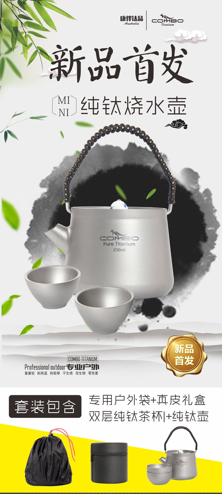 Мини-чайник Kangban из чистого титана двухслойный чашка комплект Уличный сверхлегкий портативный чайник и чайник Чайный сервиз кунг-фу