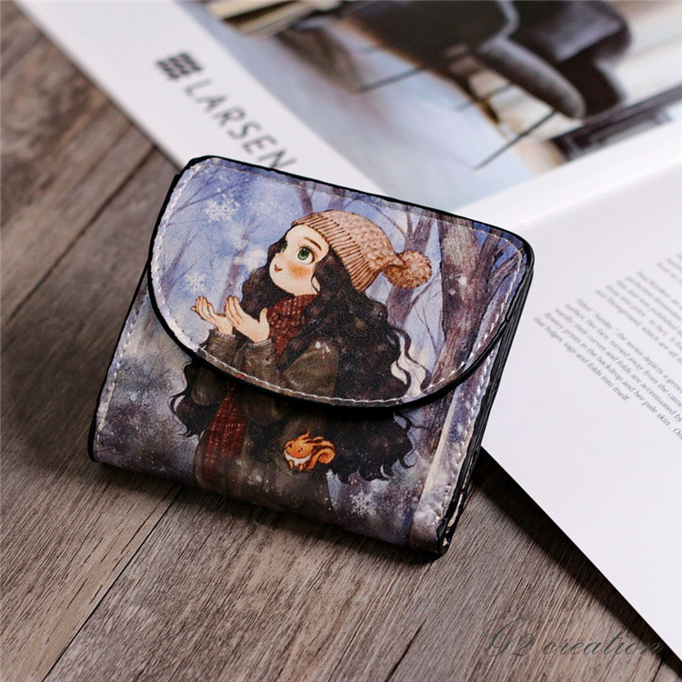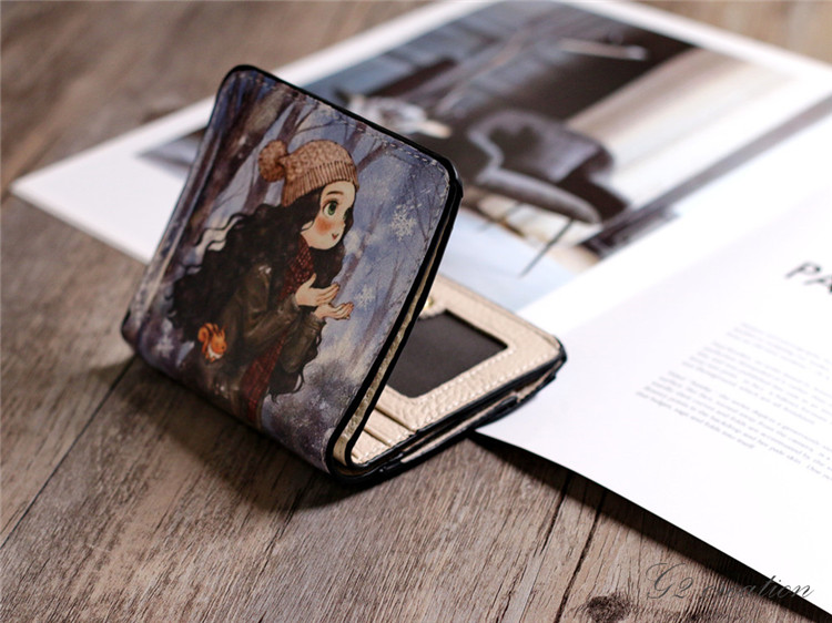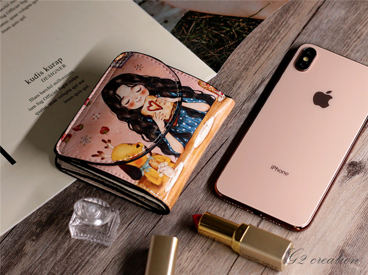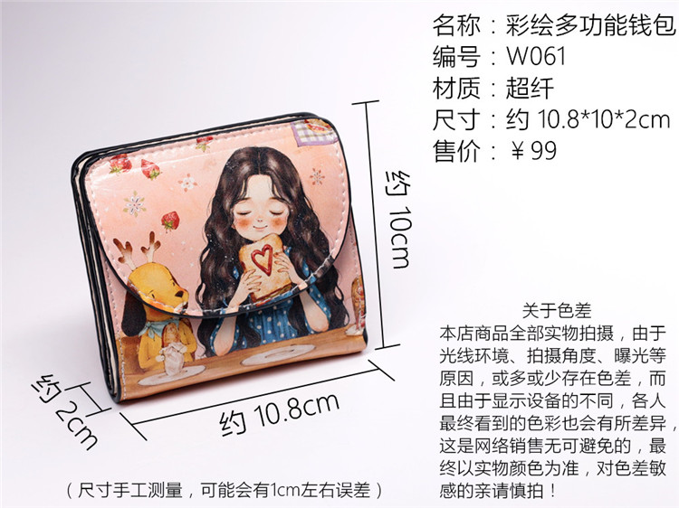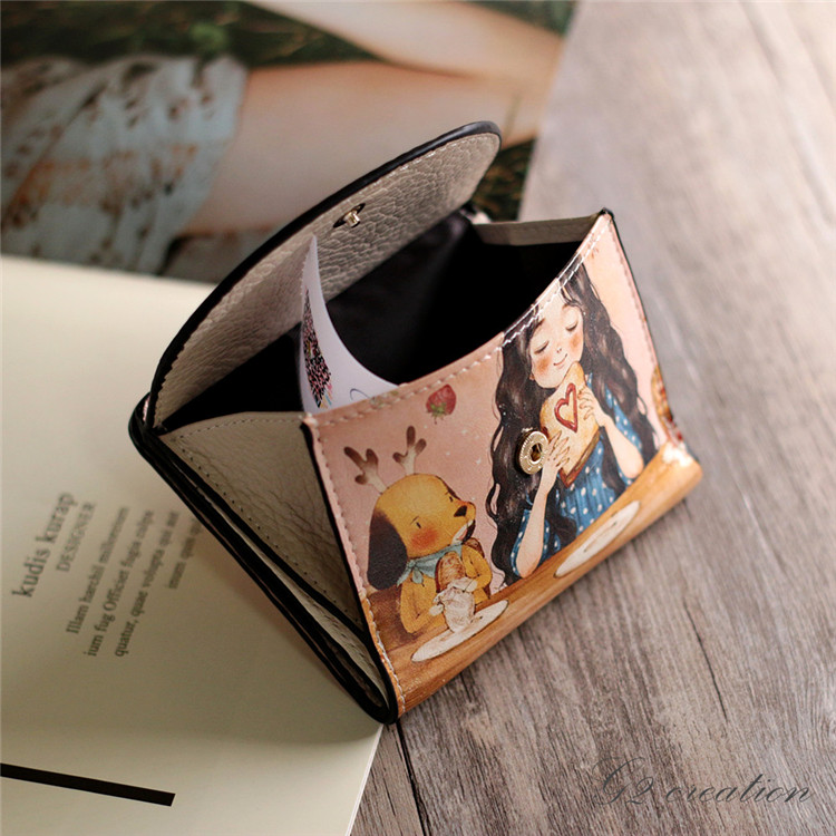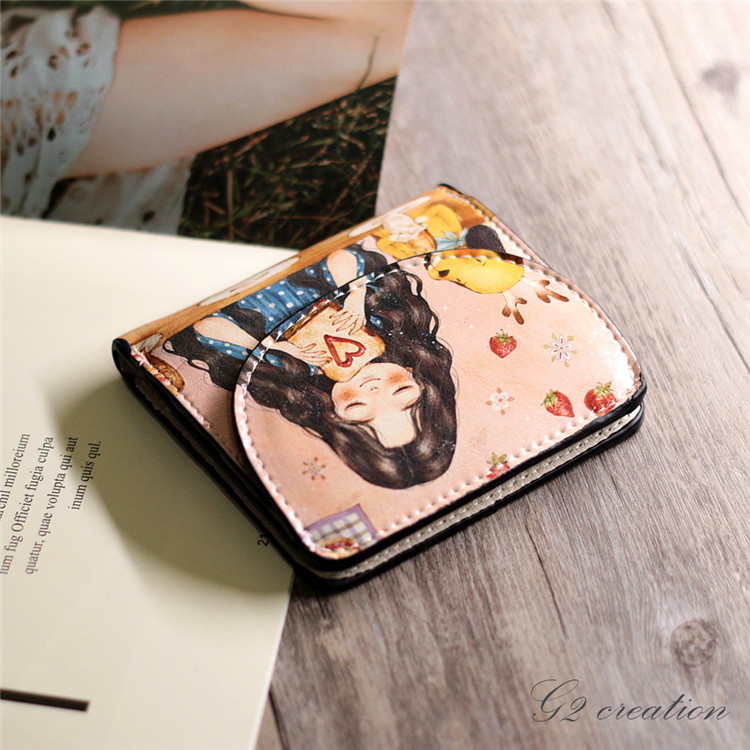 Японская и Южная Корея новая коллекция Небольшие деньги пакет Женщина короткий Небольшой ясно новый милый со складыванием Тонкий мультфильм цвет Окрашенные граффити минималистские изменения пакет