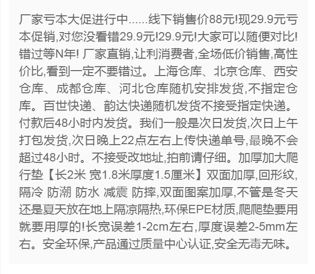 Продавец:天美乐爬行垫