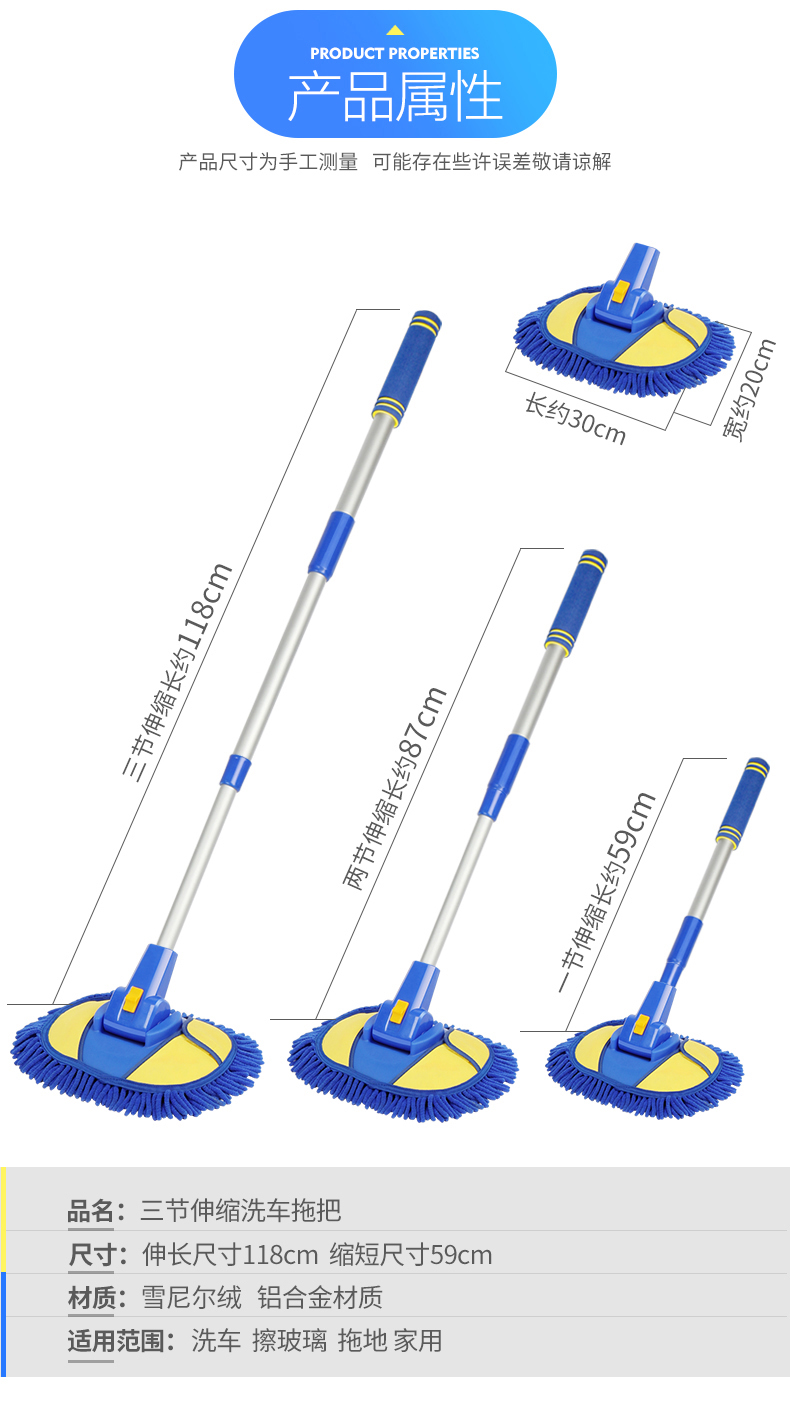 Автомойка MOP не повредит для Длинная ручка телескопическая 车 车 车 车 车 片 чистый хлопок
