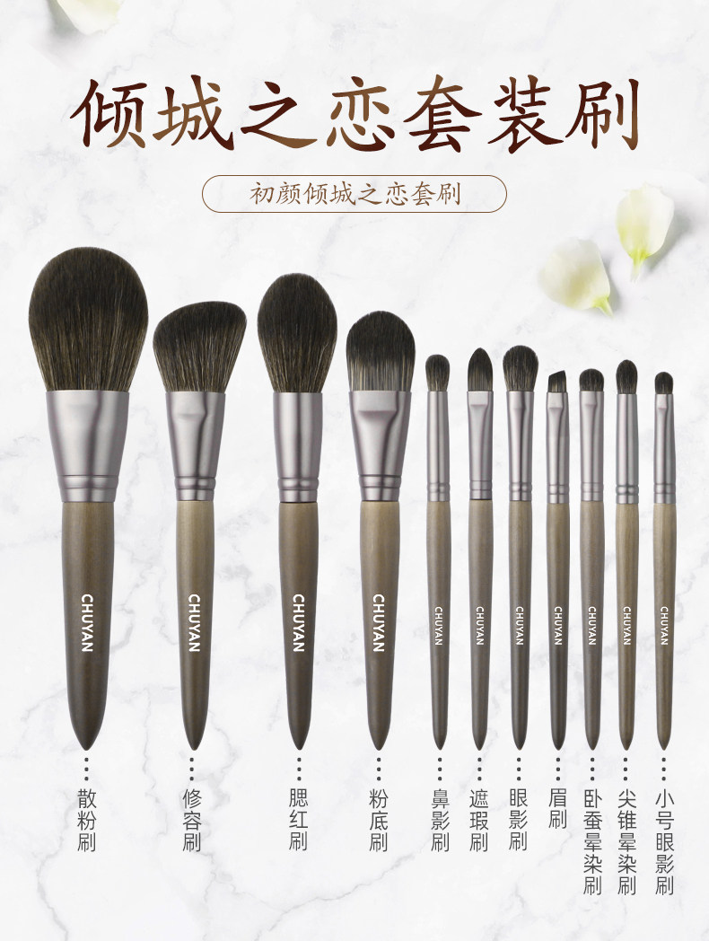 Начало Yan Qingcheng Love 11 Super мягкий Кисть для макияжа Cangzhou комплект Шерсть животных натуральная шерсть Кисть для пудры для теней полностью набор