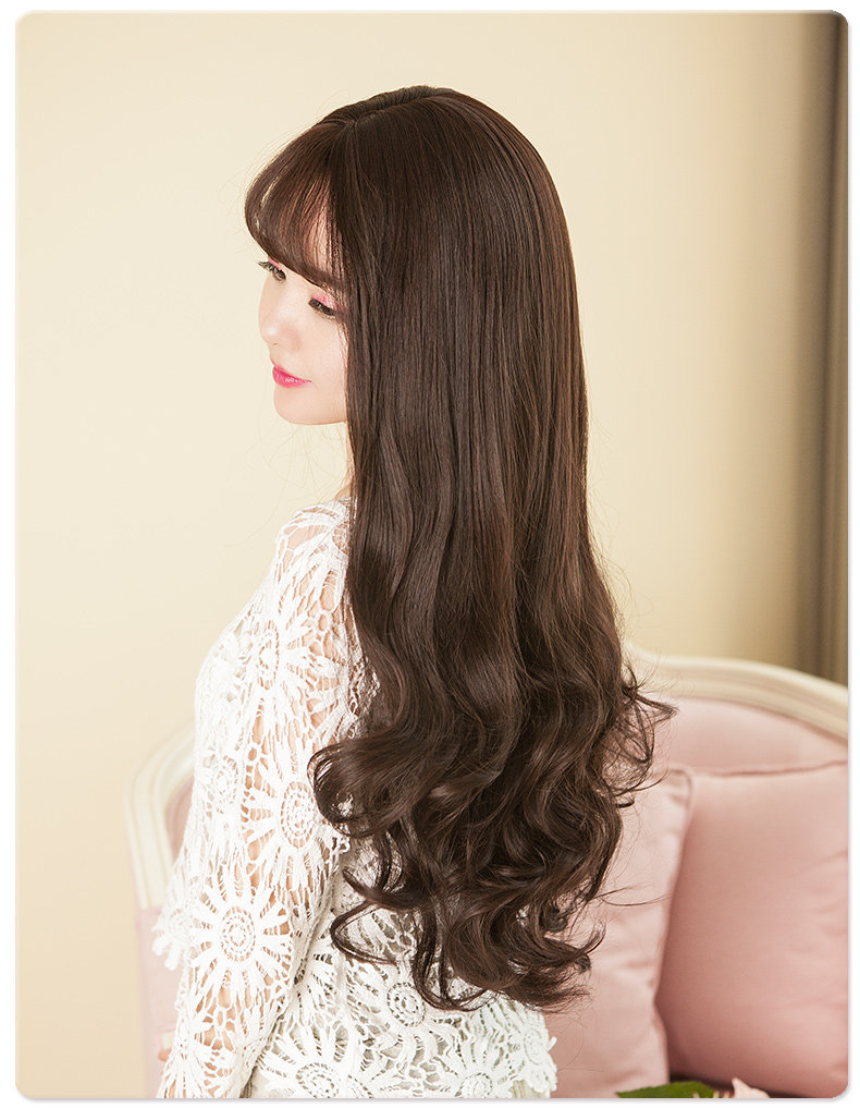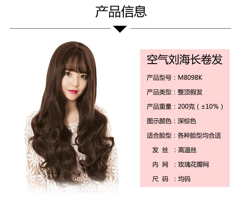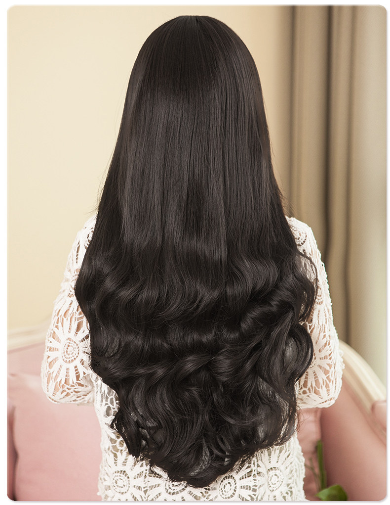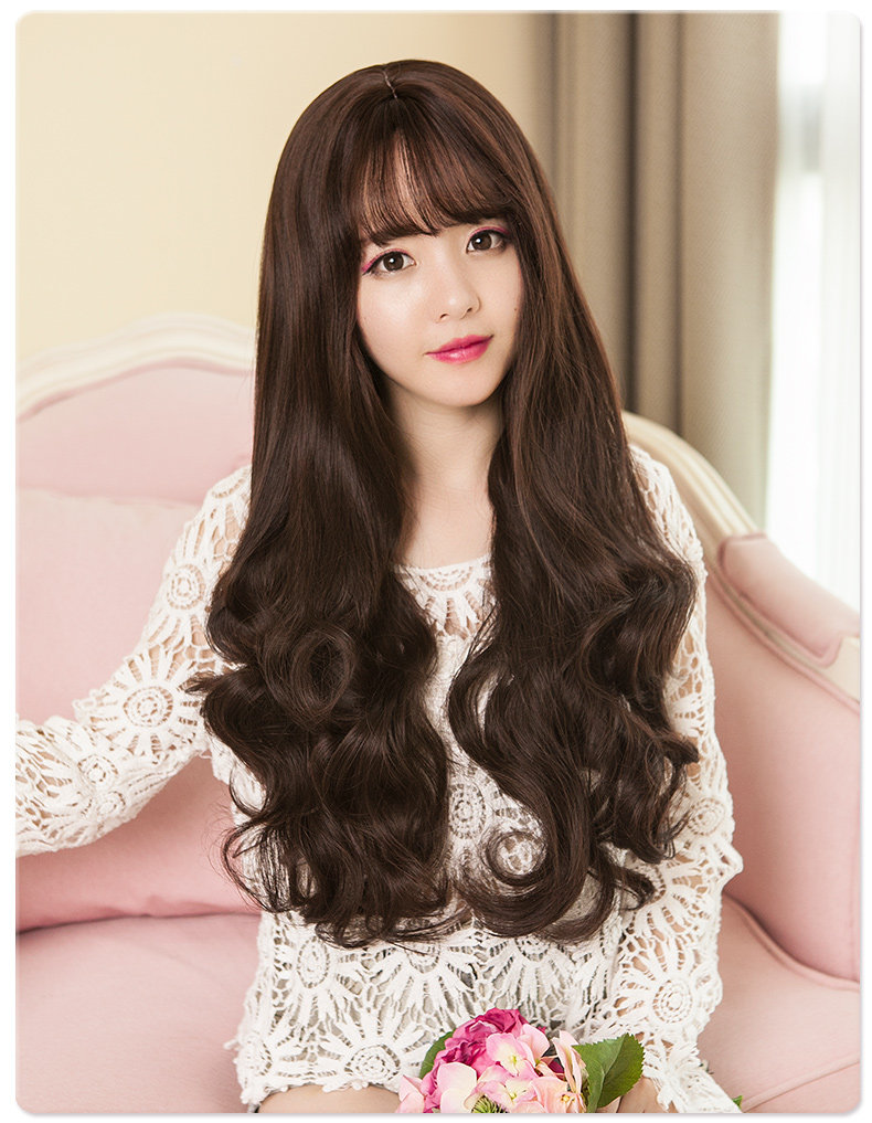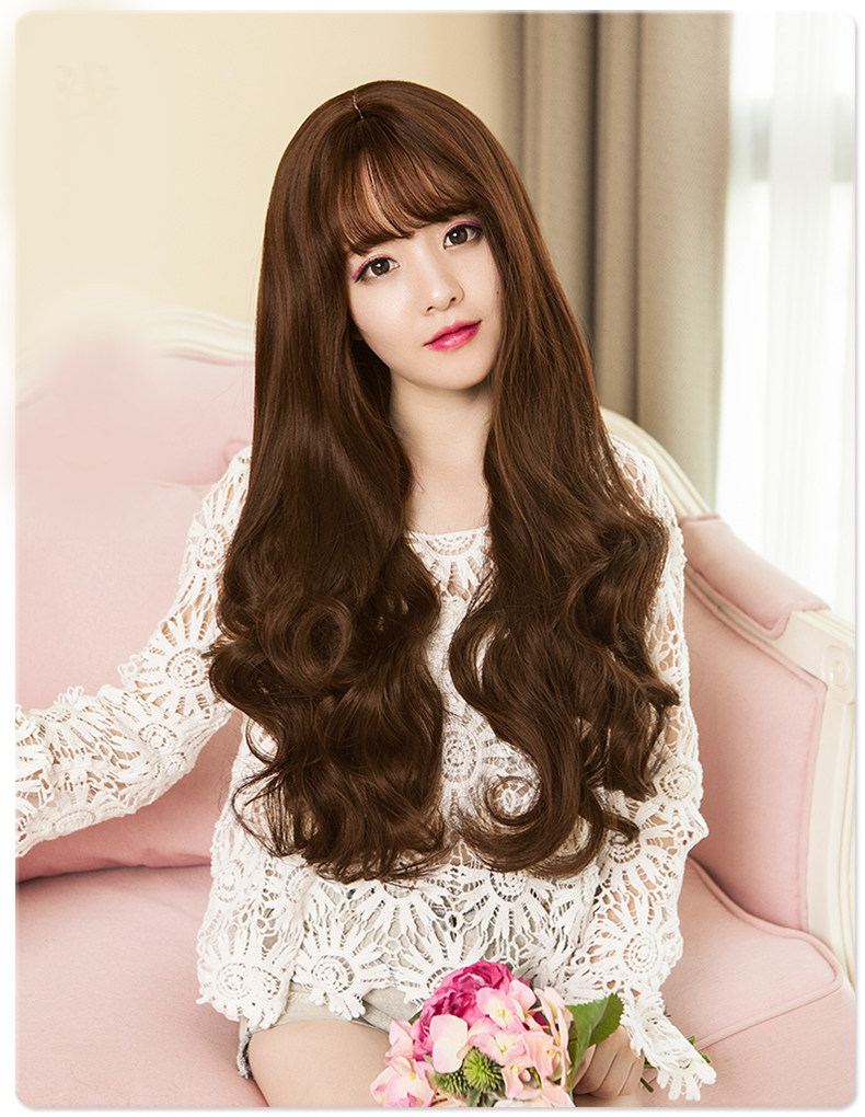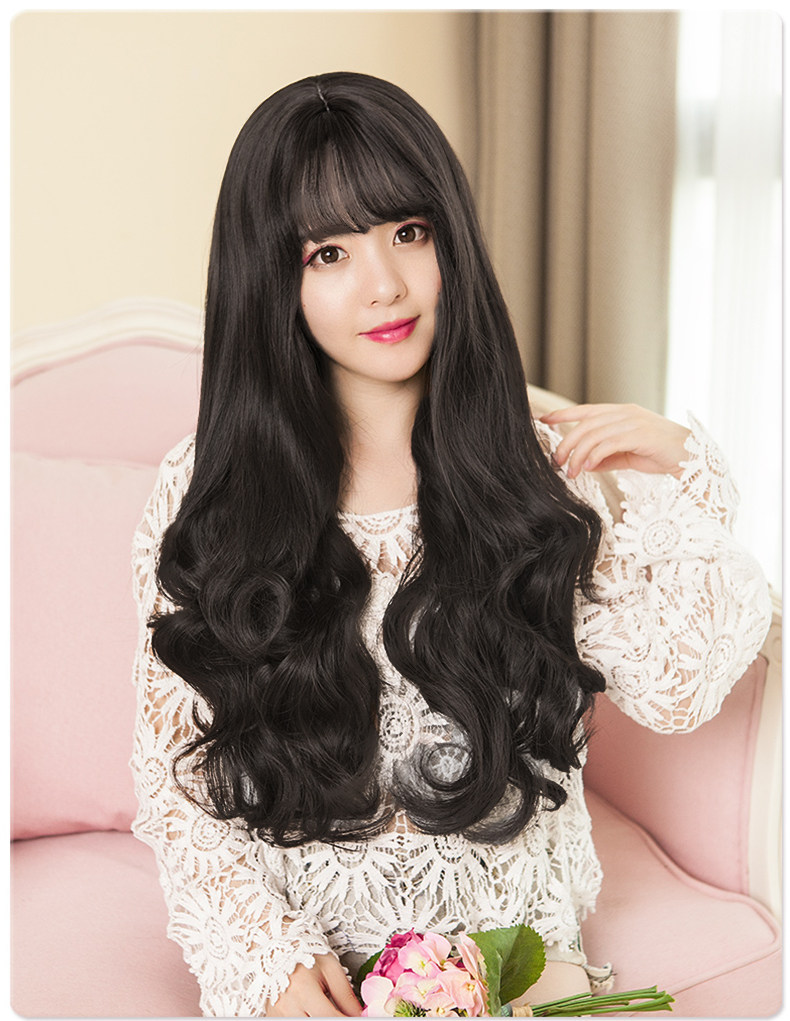 Парики женские воздушные челки длинные вьющиеся волосы большие волны популярный прогрессивный Натуральный пушистый, милый и сладкий полностью Заголовок