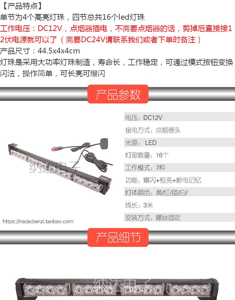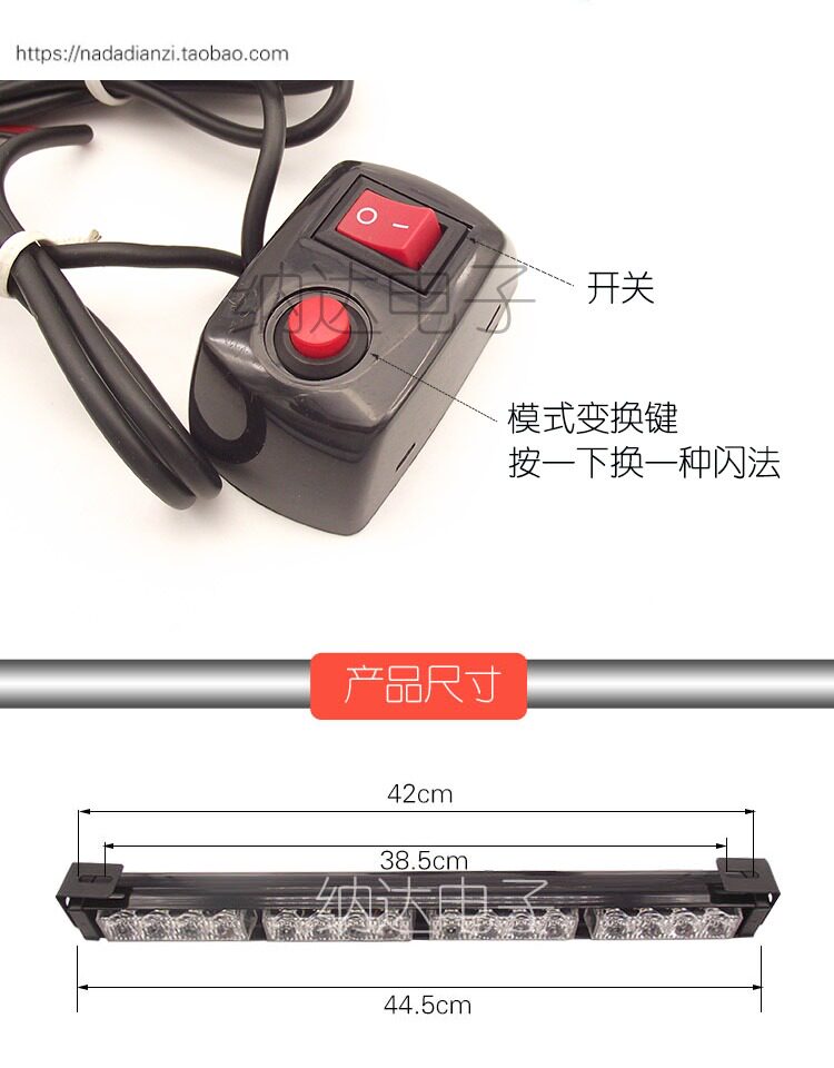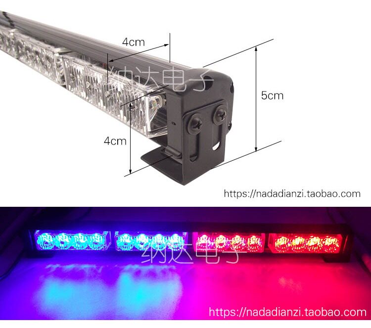 45см автомобиль решетка Светодиодная длина полосатый Стробил свет высокая Яркий красный белый синий Huang Storm Blackle. свет Прилипнуть предупреждение свет