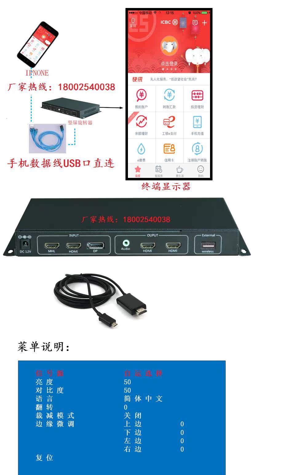 Интегрированное устройство проецирования и поворота изображения мобильного телефона Océd может реализовать поворот на 90, 180, 270 градусов входных сигналов HDMI и DP и делать вертикальные снимки экрана в соответствии с Iphone, мобильными телефонами Android и IPAD, чтобы изображение могло отображаться точно до вертикальный ЖК-дисплей или с проекцией Станки и другое дисплейное оборудование. может красный Внешний пульт дистанционного управления, шасси кнопка контроль.