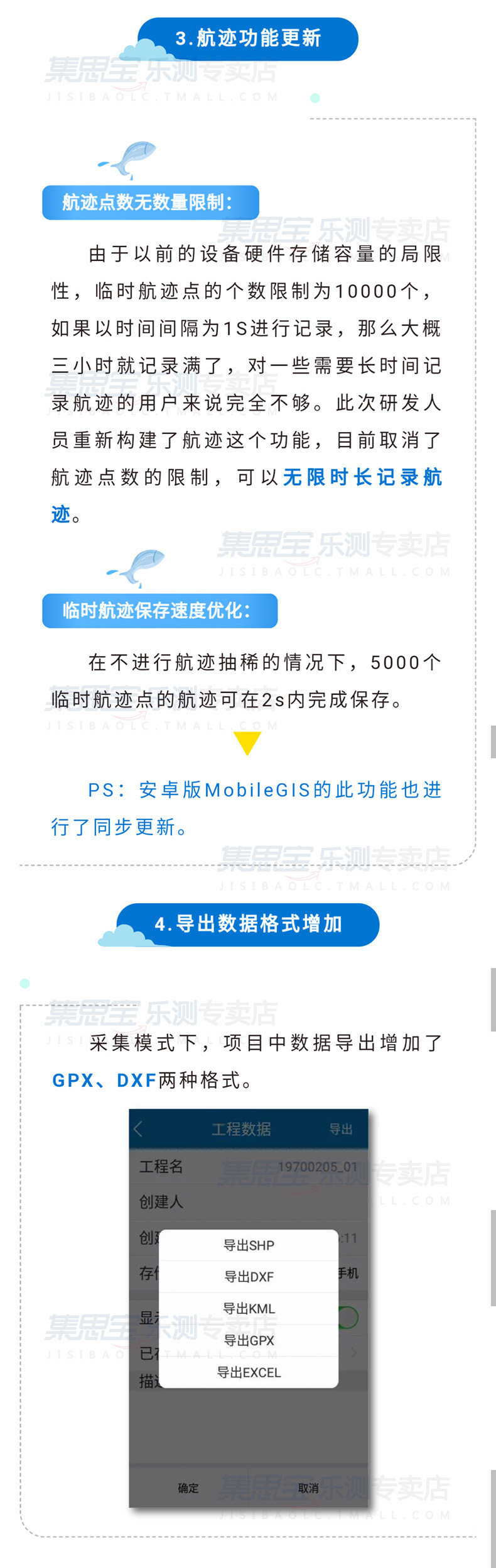 Богатый формат данных: поддержка экспорта KML EXCELSHP и других распространенных форматов данных, а также стыковка с программным обеспечением ГИС.