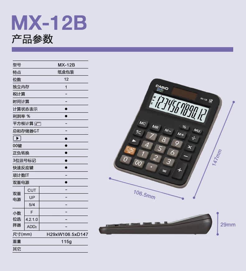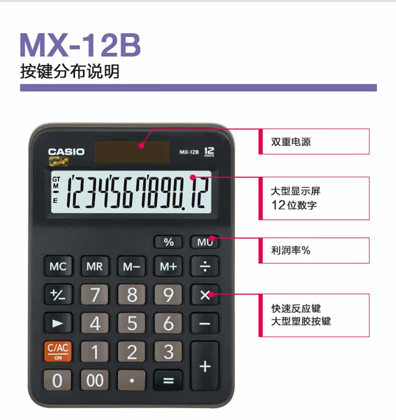 【 специализированный магазин 】 оригинал Казио Бизнес Бухгалтерский учет Финансы Офис Финансы 12 цифр для Большой кнопка Большой экран многофункциональный солнечный двойной блок питания Размер компьютера DH / MH / MX12