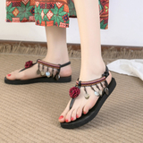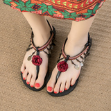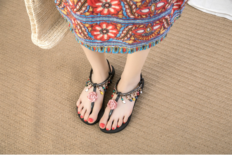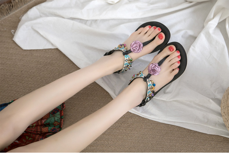 Богемный интерьер Сандалии женские лето на плоской подошве Дикий популярный Сказочные туфли 2022. новая коллекция Этнические стиль праздничные пляжные туфли