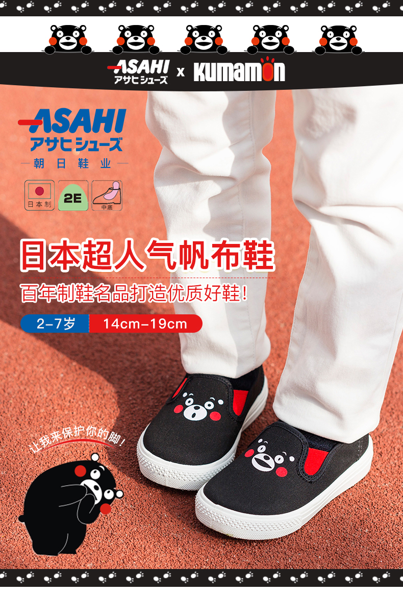 Асахи асахи【Кумамото】Талисман серии детская обувь Сделано в японии детские кеды Одна педаль три стиль