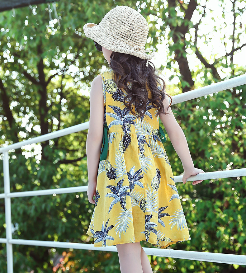На девочку Qi. хлопок Шесть платье Летнее платье 2021 новая коллекция Mianxia. детские Девушка летняя юбка