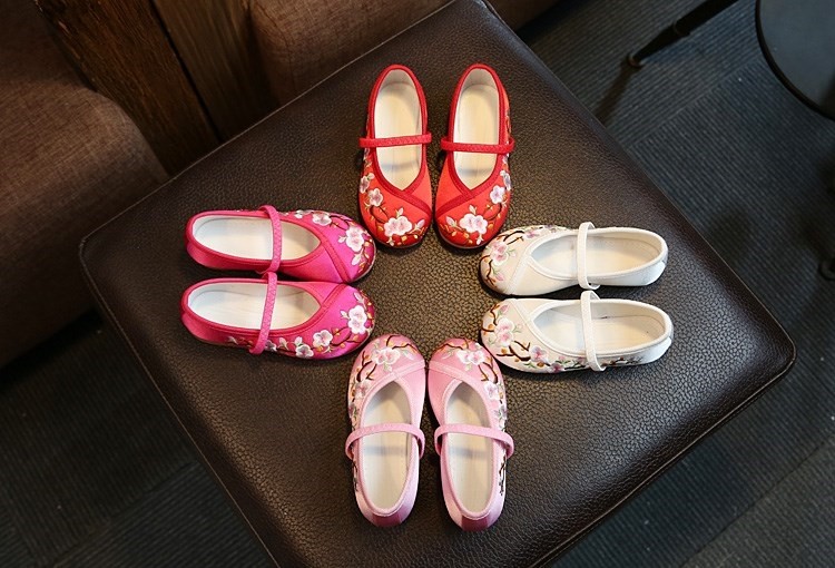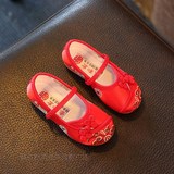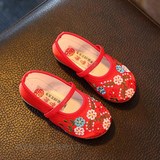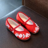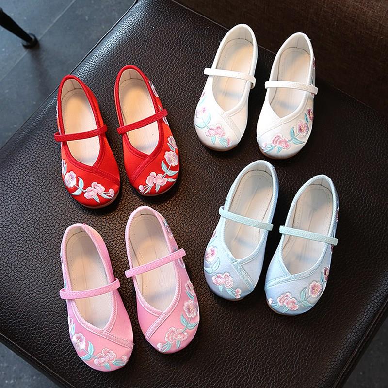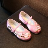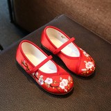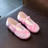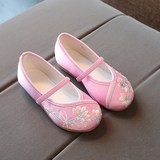 Hanfu на девочку Обувь, античный стиль, детская обувь, детская обувь среднего возраста, вышитая обувь в китайском стиле, подошва из говяжьего сухожилия. толстая