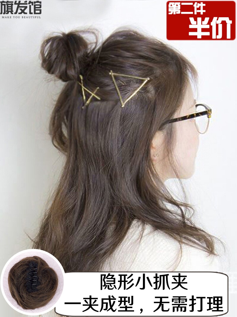Невидимый зажим для маленьких волос пакет Парик с половинной головкой, женский захватывающий зажим, цветочный бутон, пушистые волосы копия Настоящая голова фрикадельки