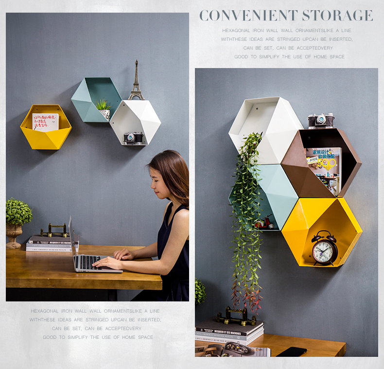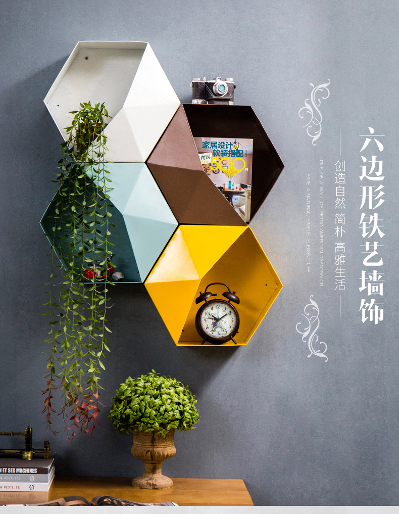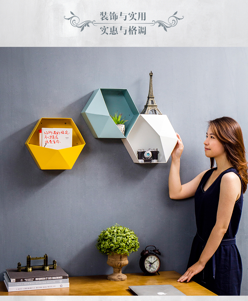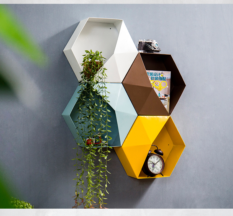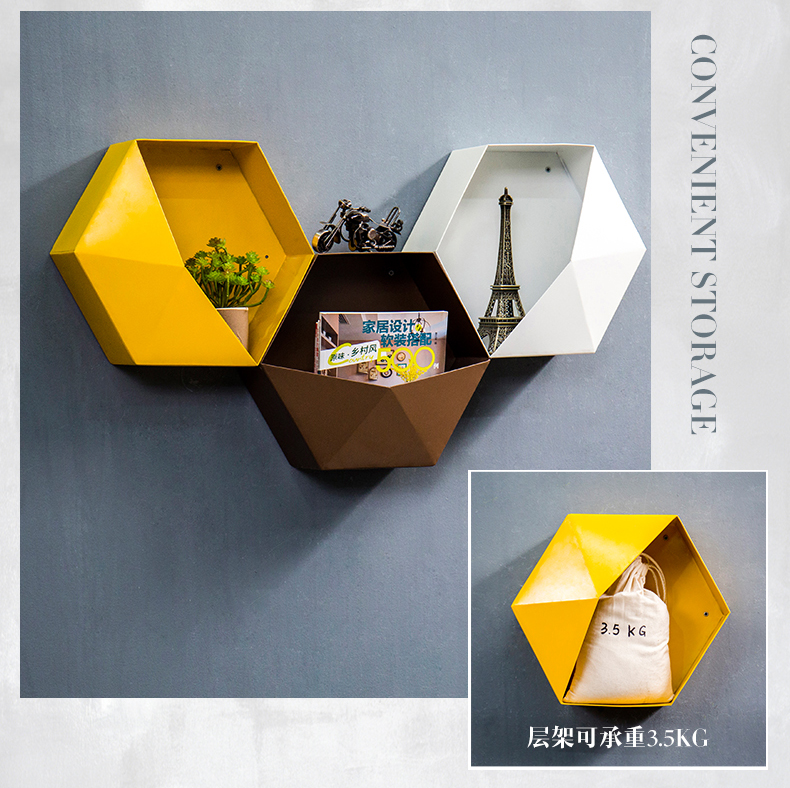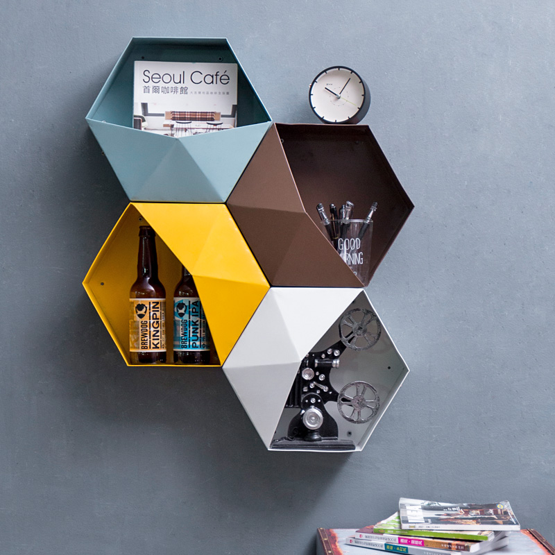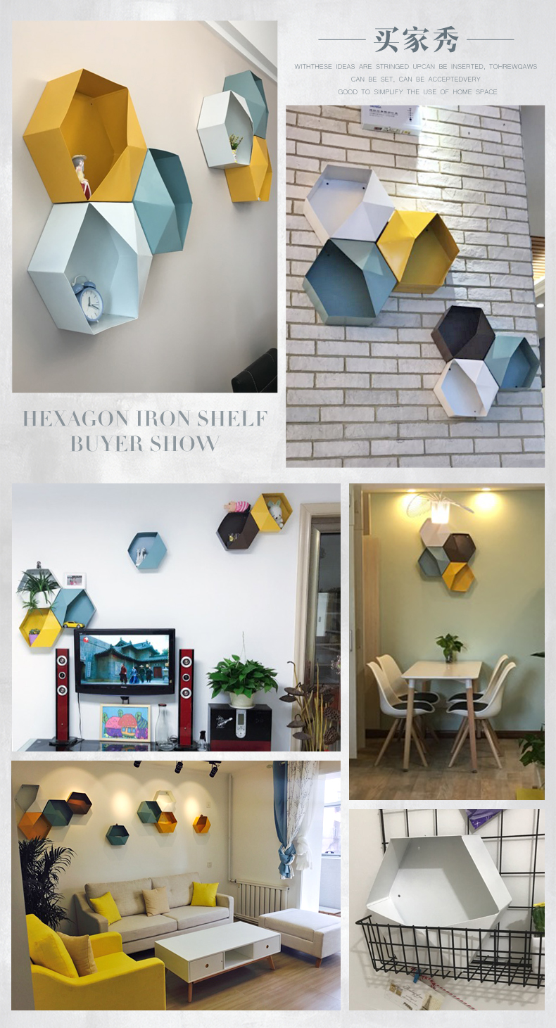 Стена комнаты Nordic шестиугольника верх Настенная полка для хранения детские Комната ins декоративная рамка настенная мебель