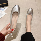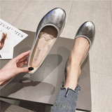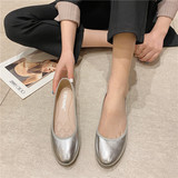 Весна серебряный на плоской подошве Обувь Женская Круглая голова ботинки на мягкой подошве Мягкая кожаная обувь туфли Выпуклость золотой светло Лето