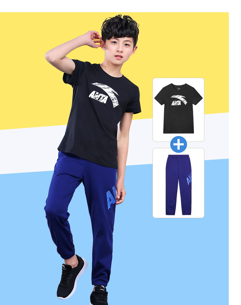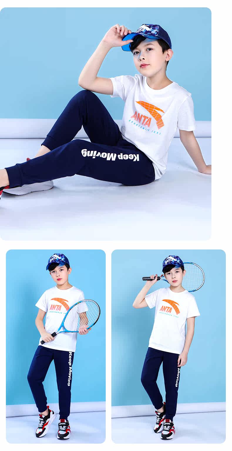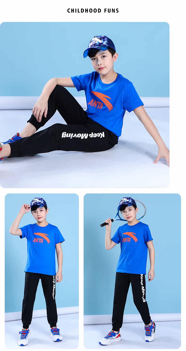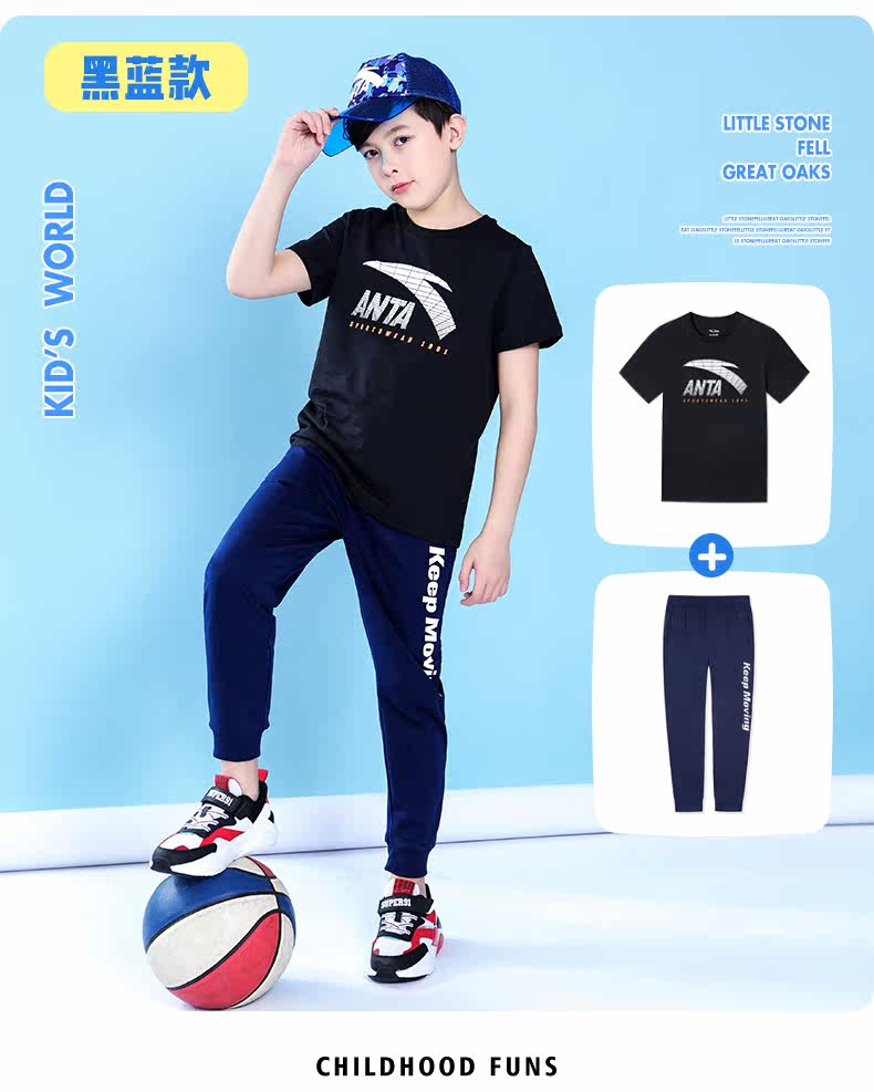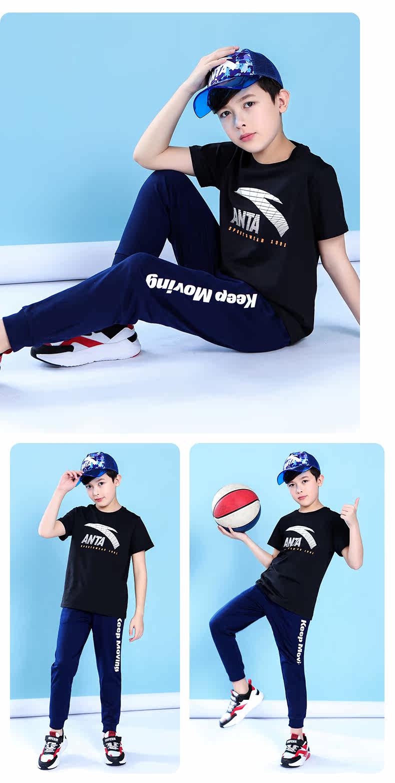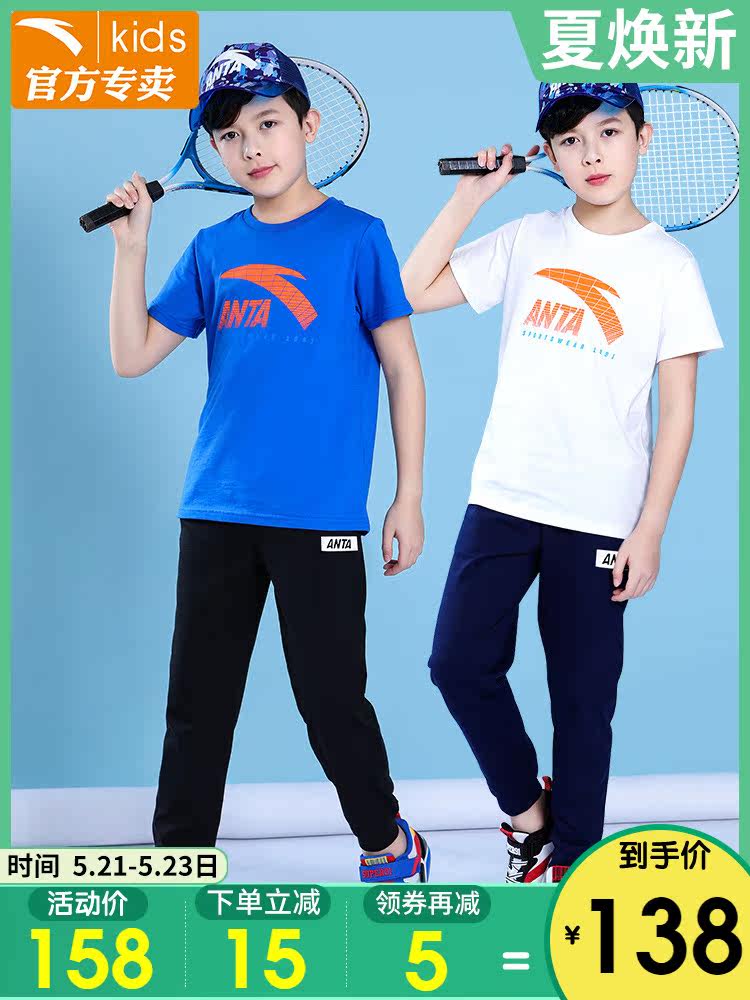 Анта детское на мальчика короткий рукав комплект 2021 новая коллекция детские Футболка летняя для больших детей тонкие спортивные штаны для отдыха комплект