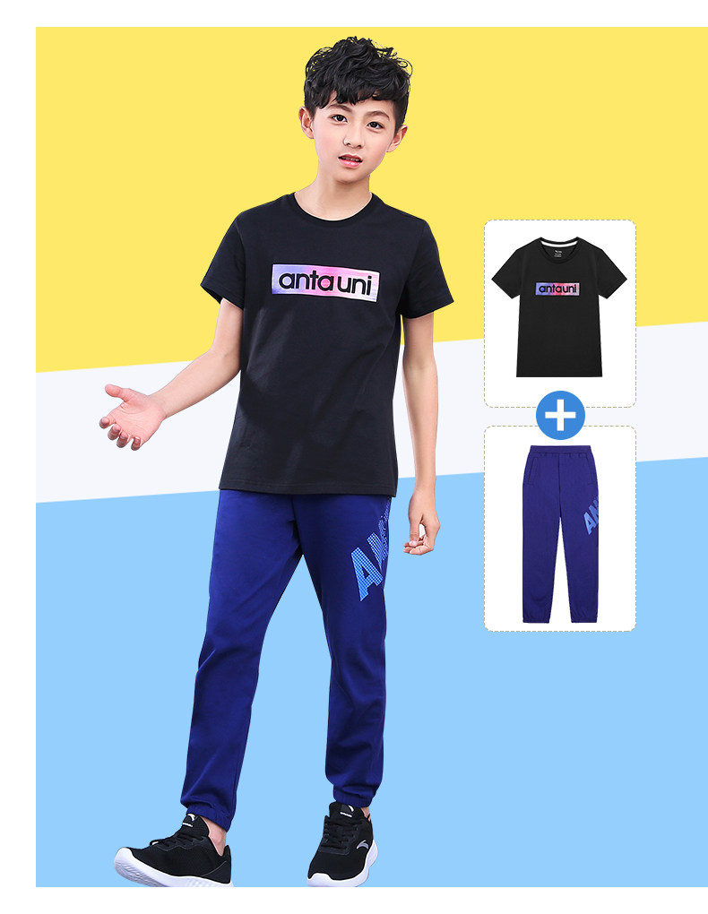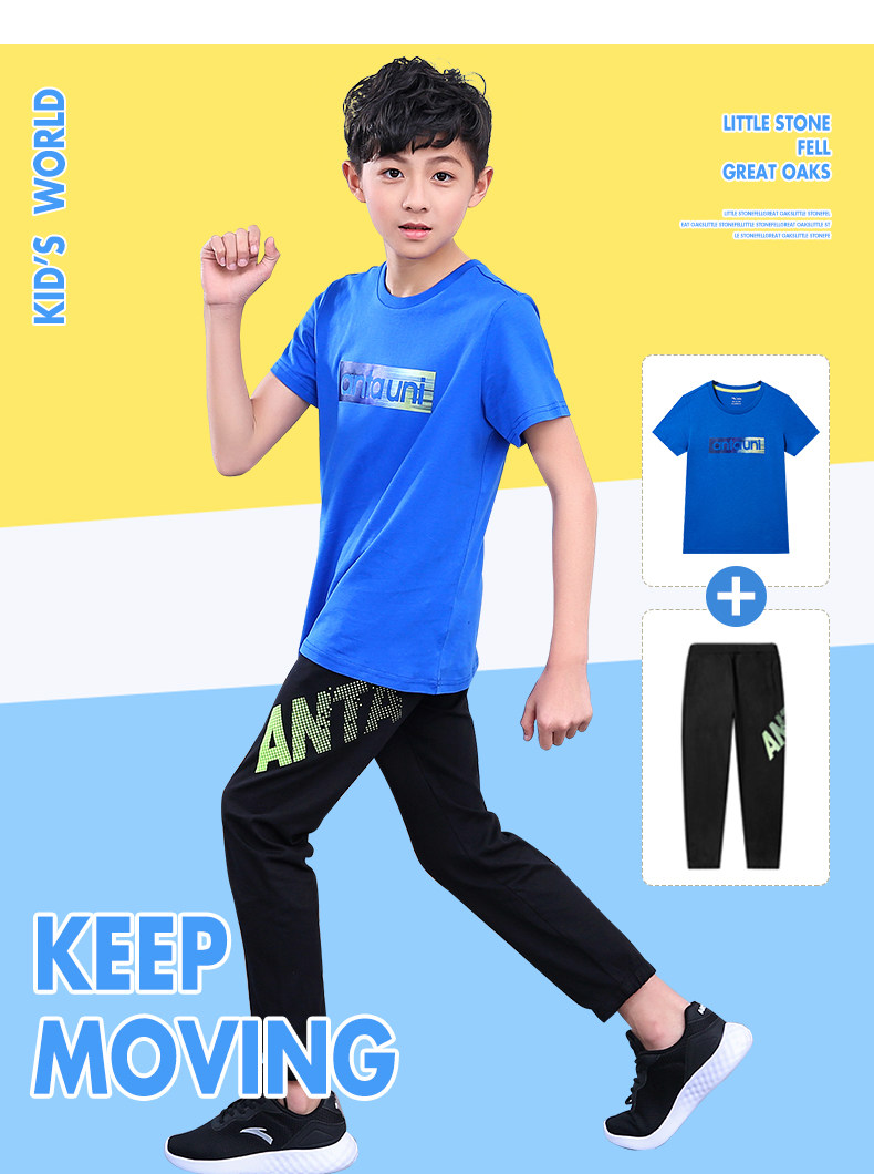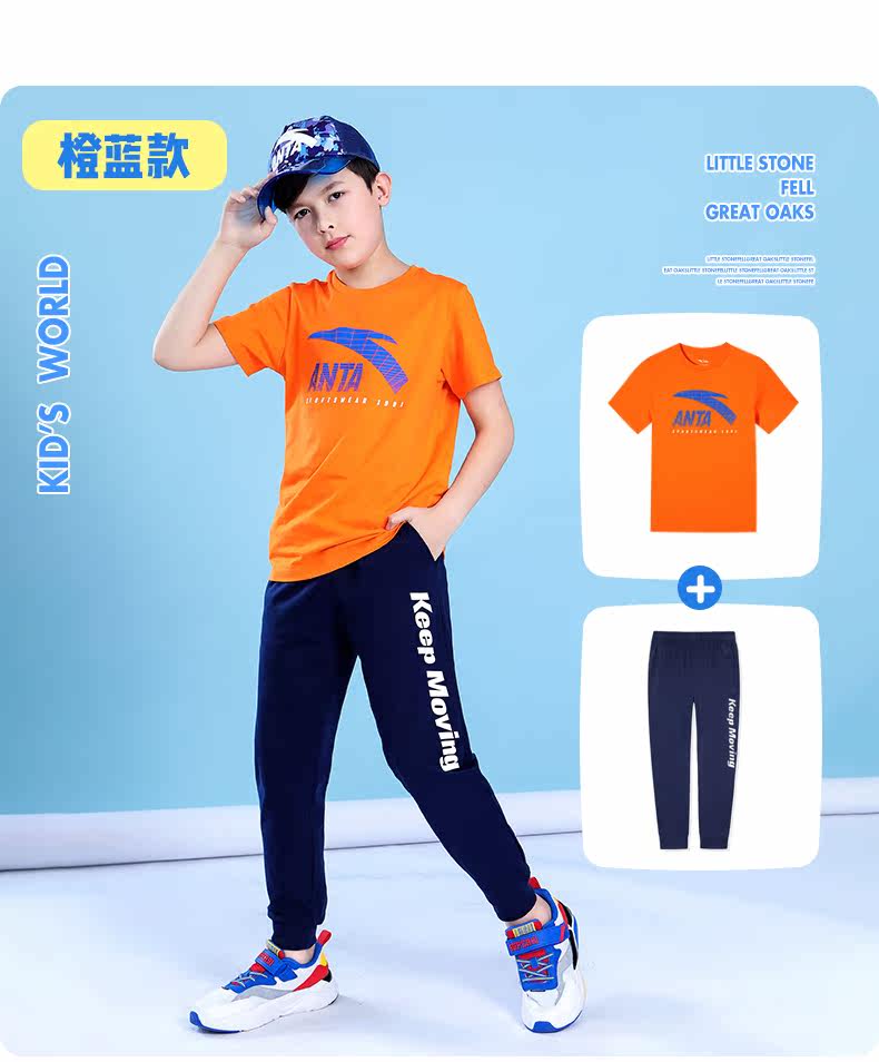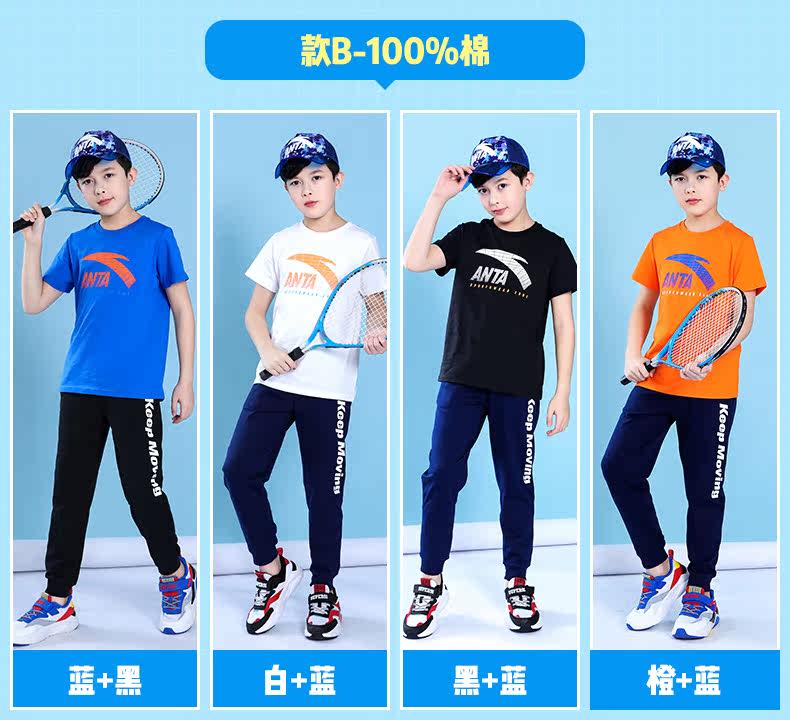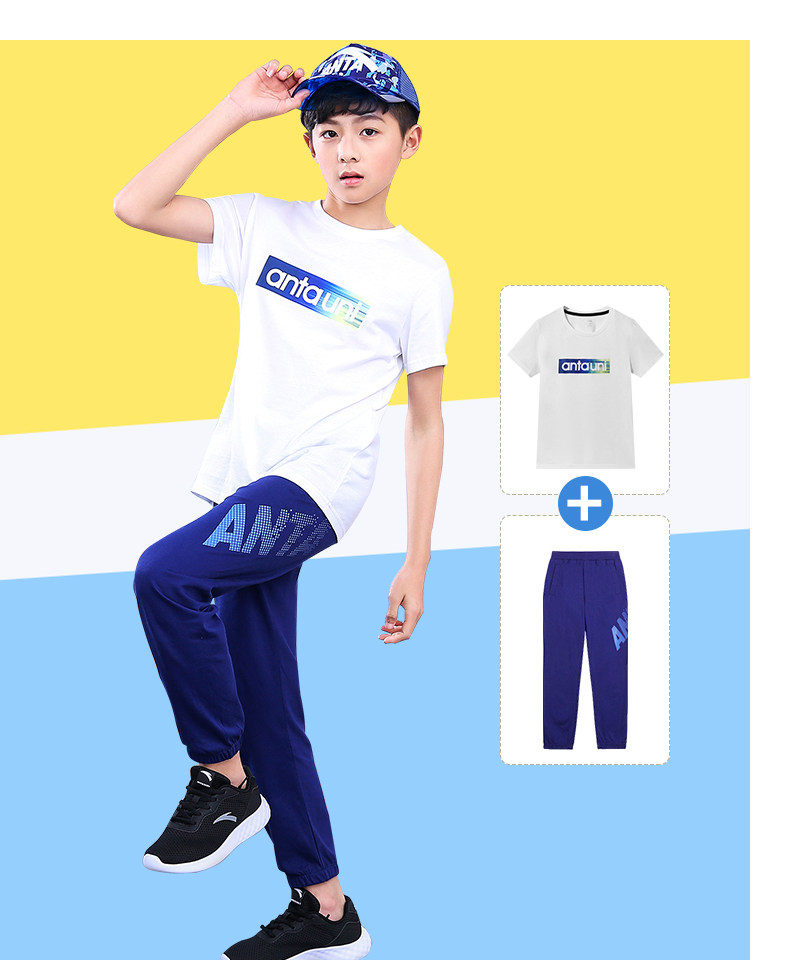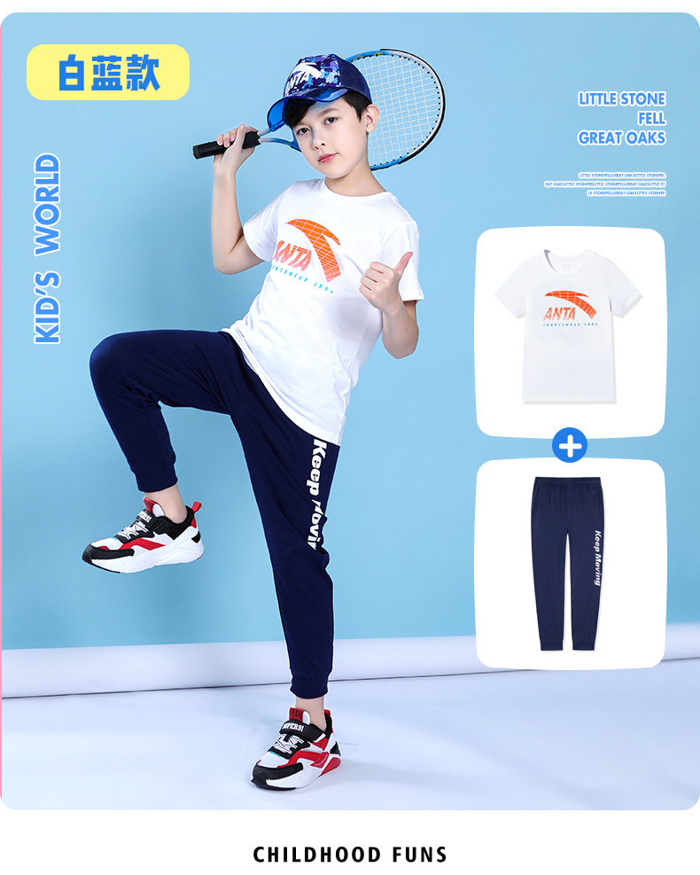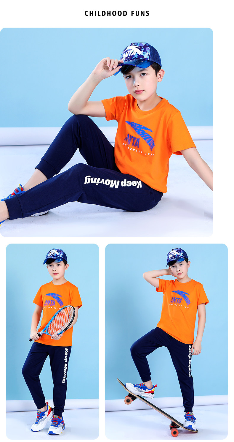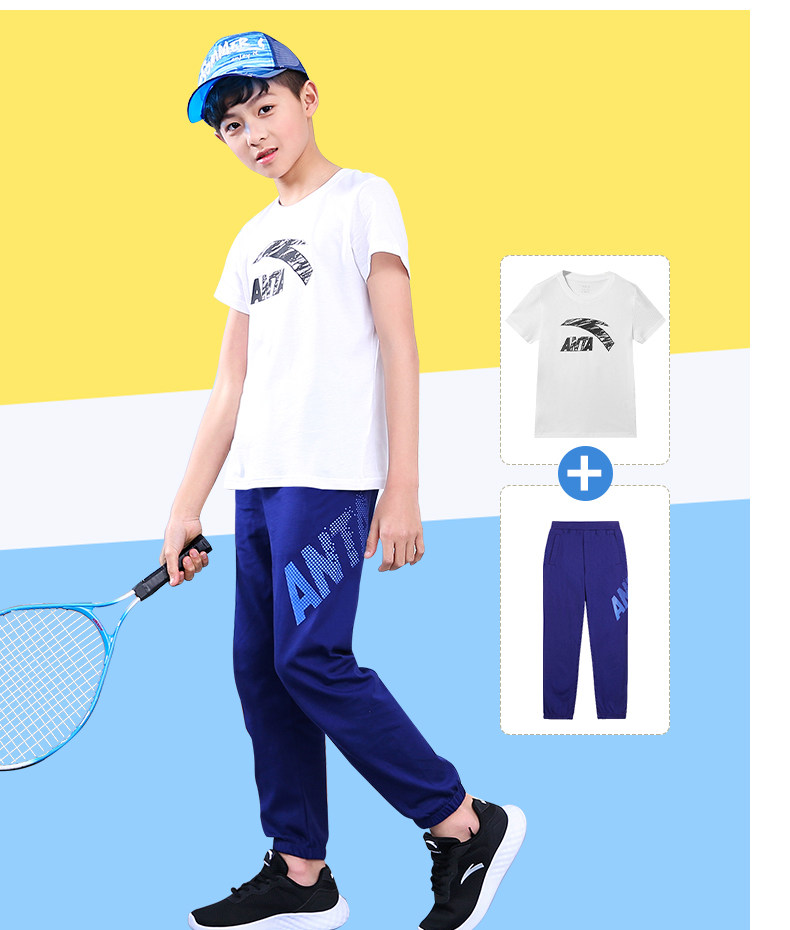 Анта детское на мальчика короткий рукав комплект 2021 новая коллекция детские Футболка летняя для больших детей тонкие спортивные штаны для отдыха комплект