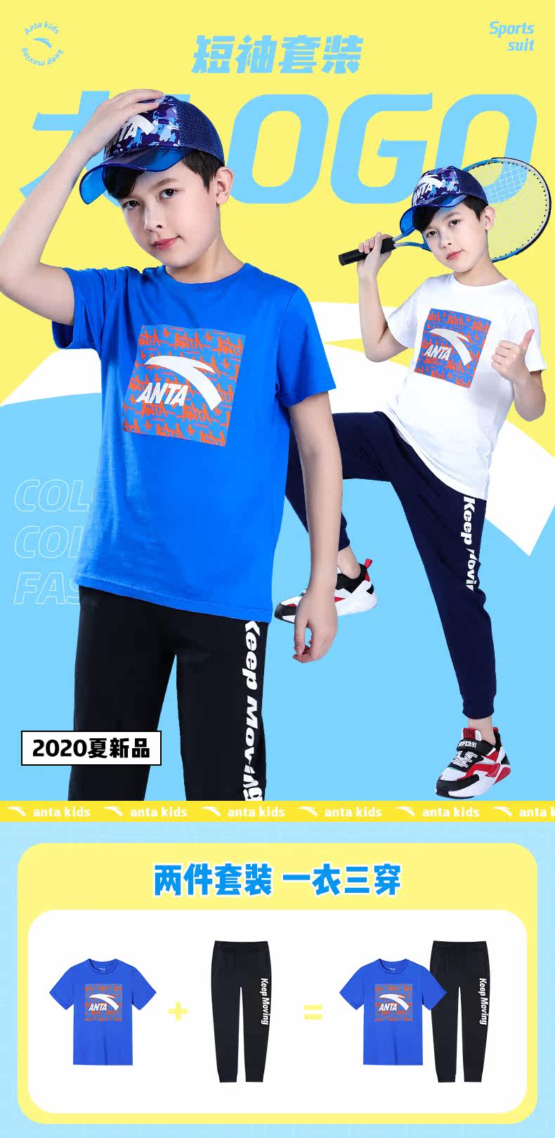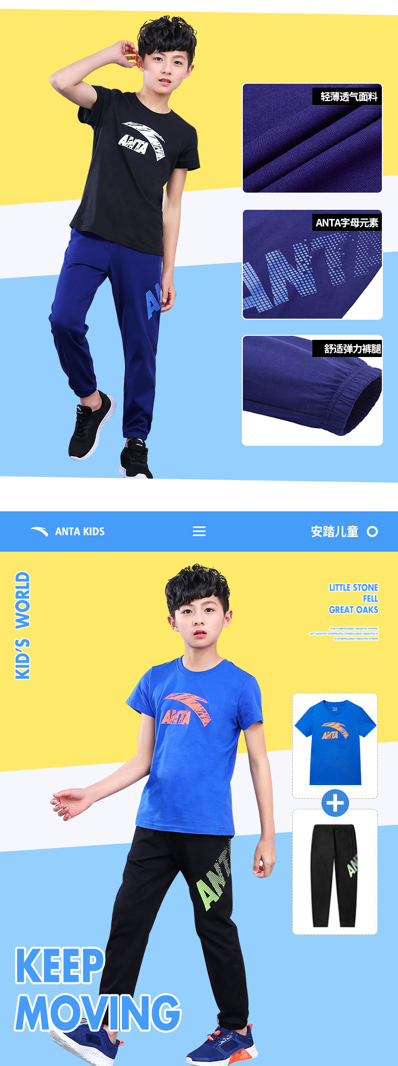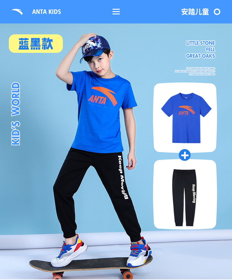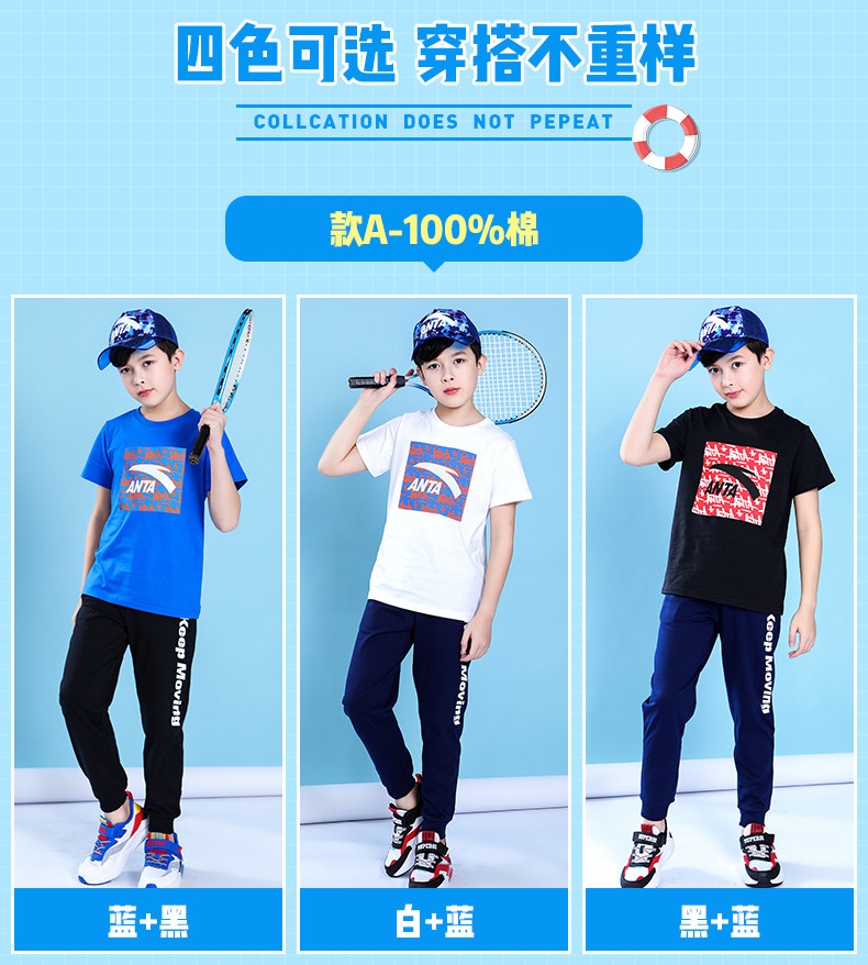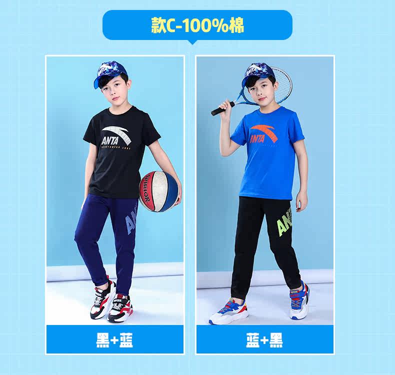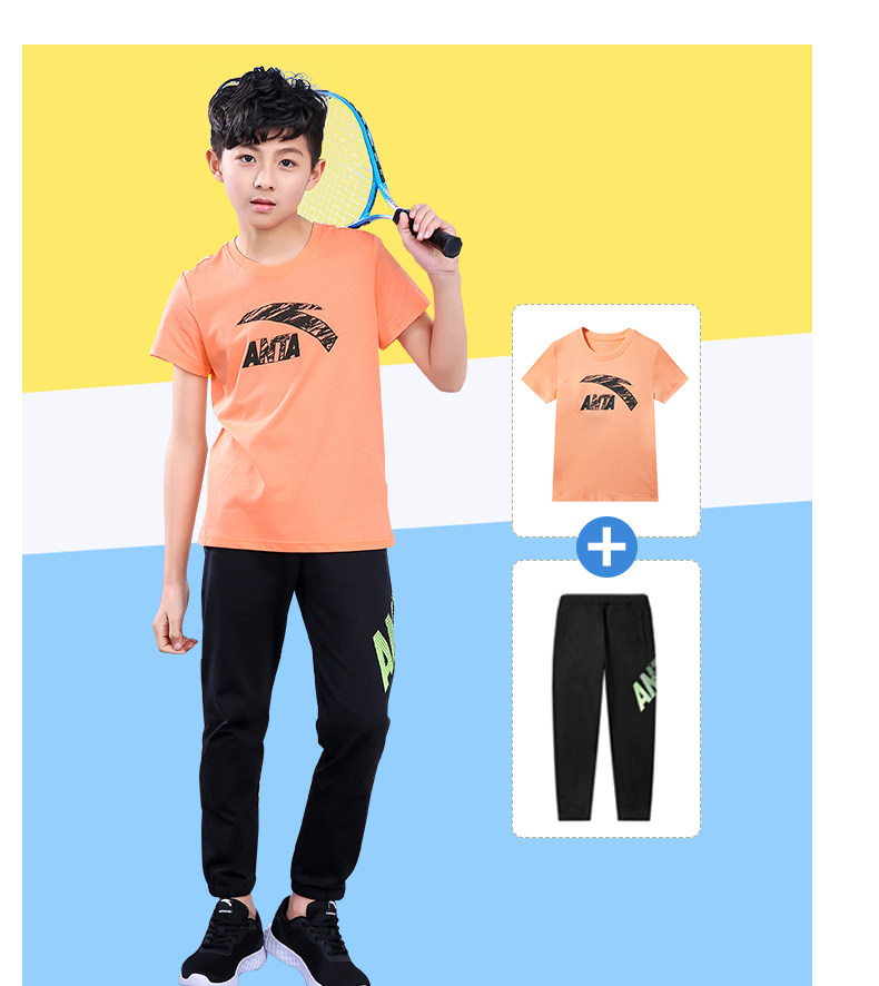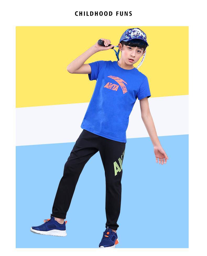 Анта детское на мальчика короткий рукав комплект 2021 новая коллекция детские Футболка летняя для больших детей тонкие спортивные штаны для отдыха комплект