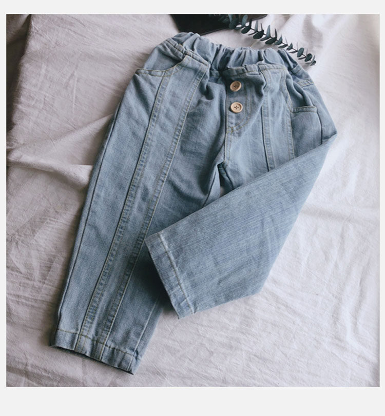 2020 демисезонный новая коллекция детское Рот и стопы маленьких и средних детей детские джинсы мужские и женские ребенок детские Длинные штаны