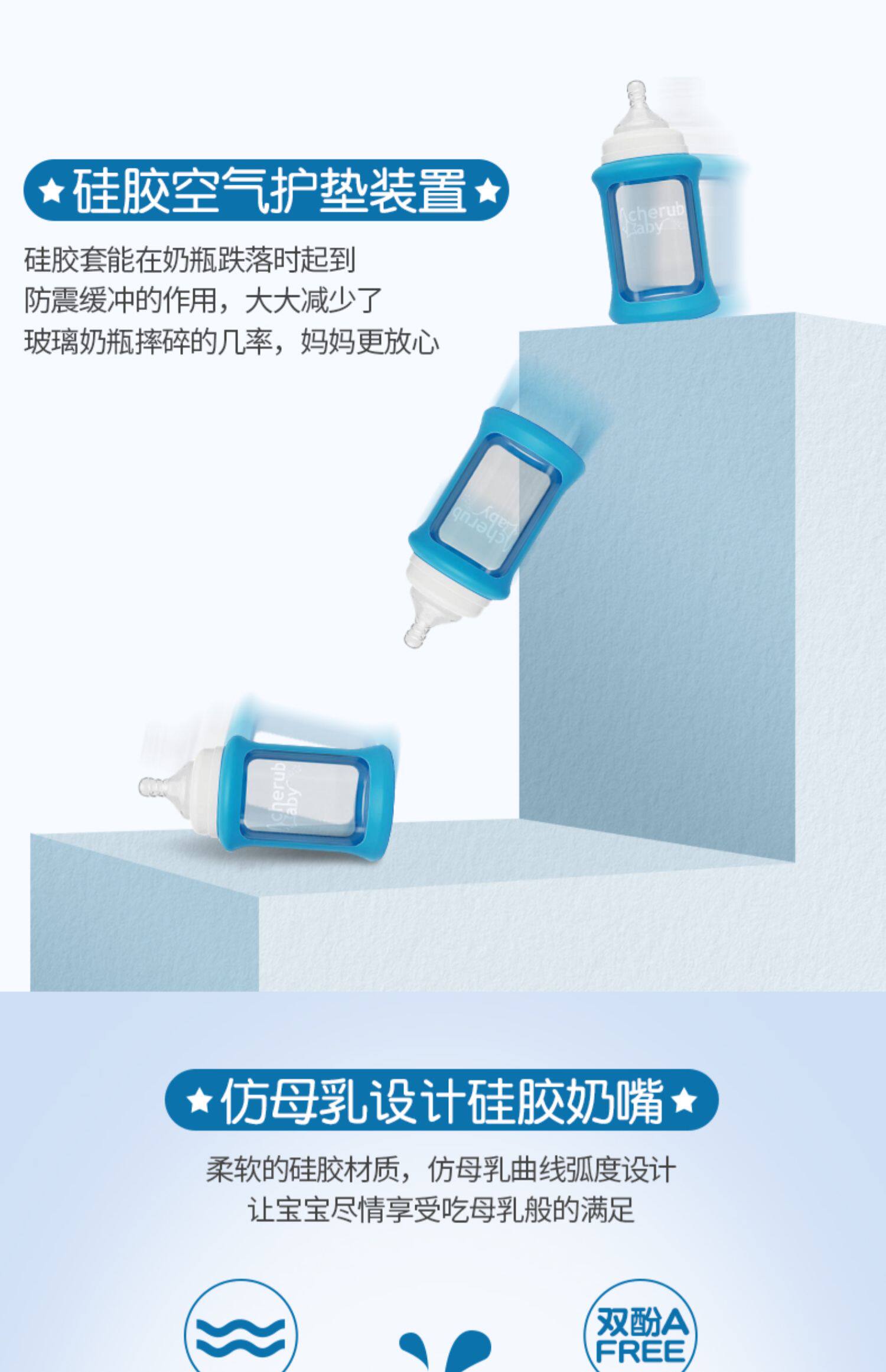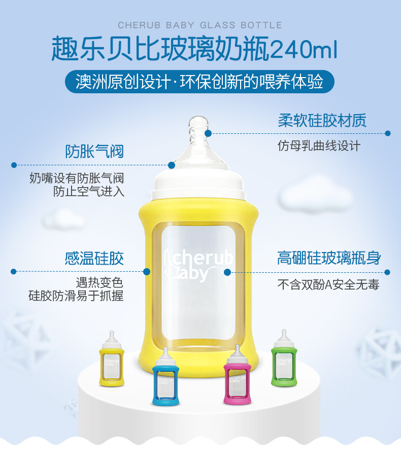 Херувим ребенок импорт на младенца Широко -температурная температура Силиконовое стекло Силиконовое стекло детские Бутылка, устойчивая к палке и предотвратить метеоризм