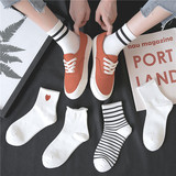 Белый Носки средние Носки летние тонкие стиль Ins tidal network. красный чистый хлопок Милый день полосатый принт Лондовое носковое лето