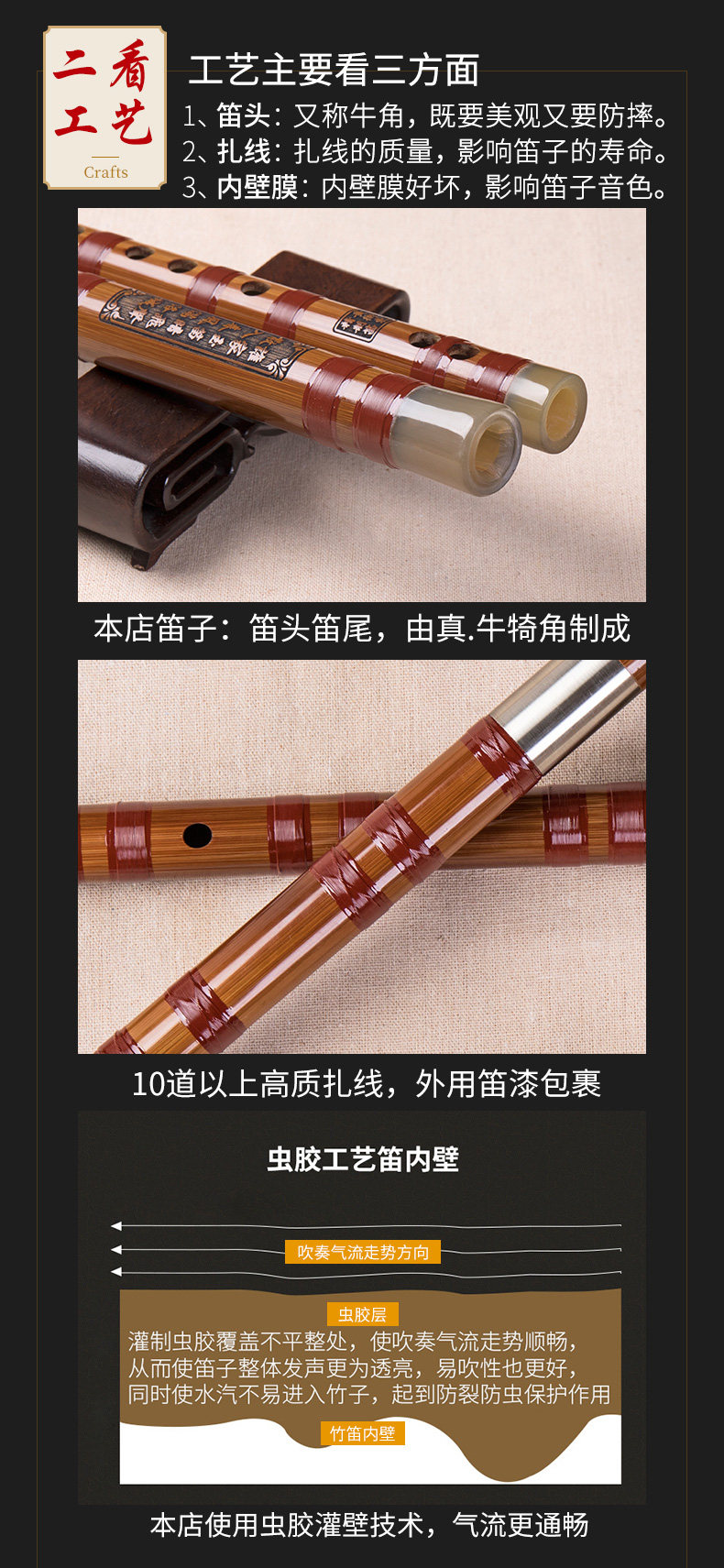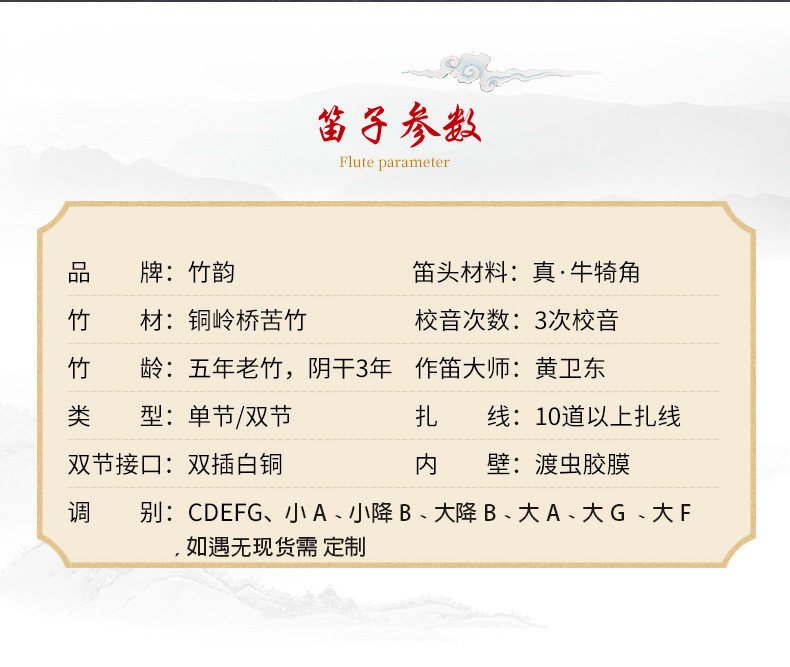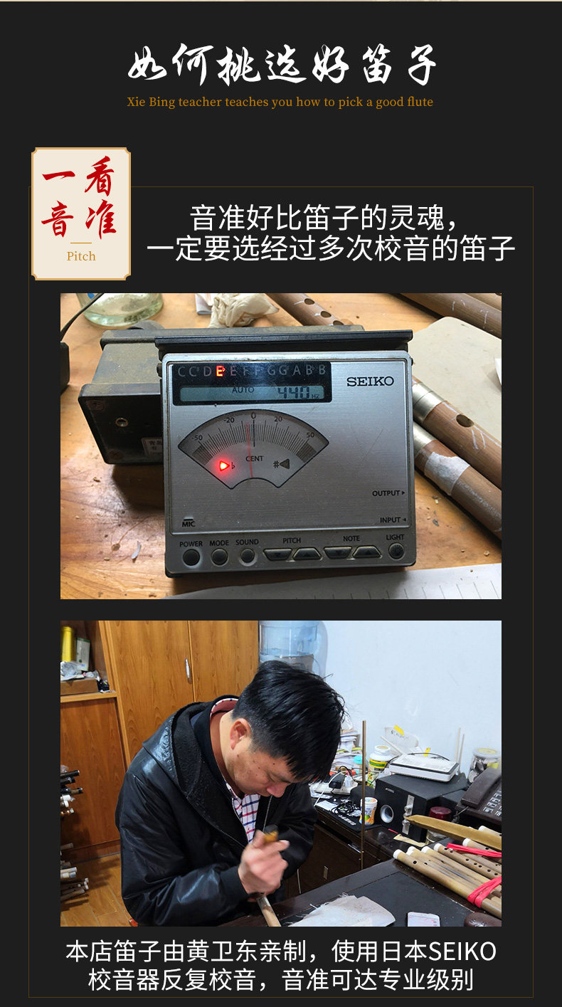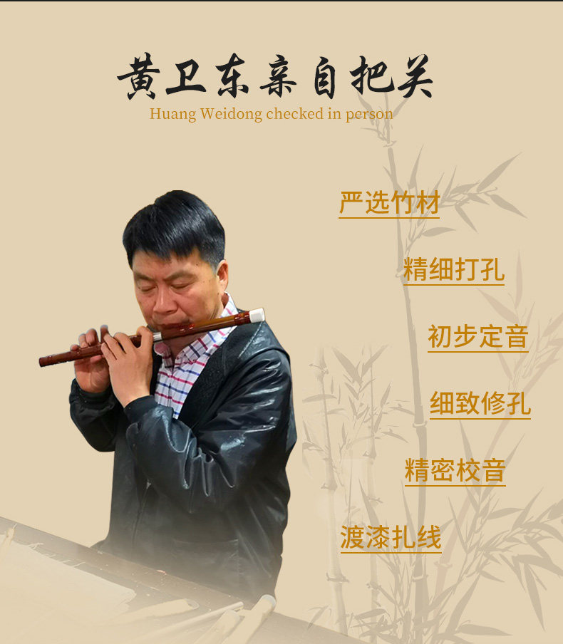 - Хуан Вэйдун изысканный двухсекционный горький бамбук(Басовая флейта большая G, большая F, большая капля B, большая A и т. Д.)