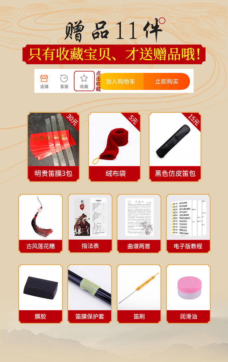 - Хуан Вэйдун изысканный двухсекционный горький бамбук в тонах ми + флейта пакет + Аксессуары