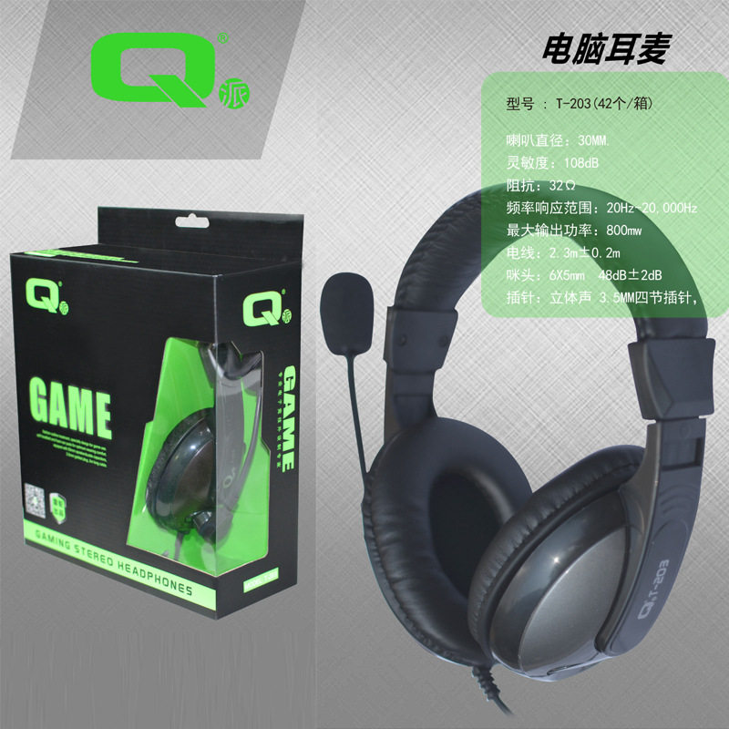 Q Отправлено T203 Гарнитура гарнитуры гарнитура компьютера 3.5 мм игра наушников имеет Линия наушники с микрофоном микрофона