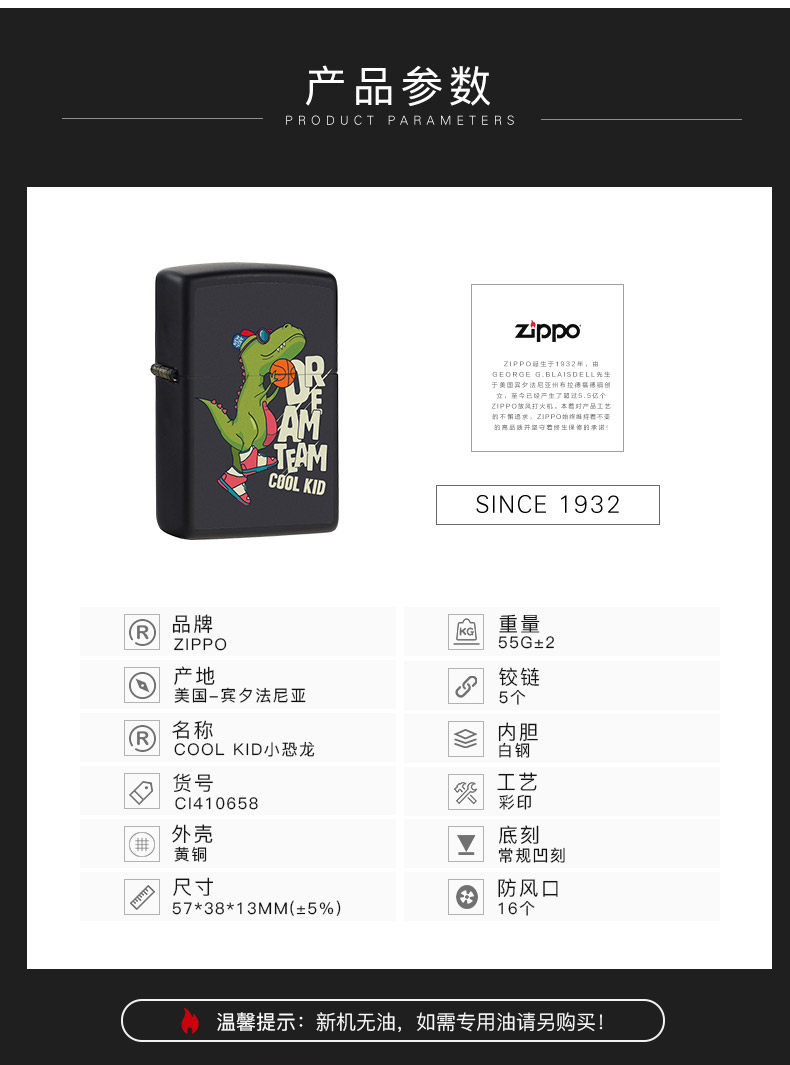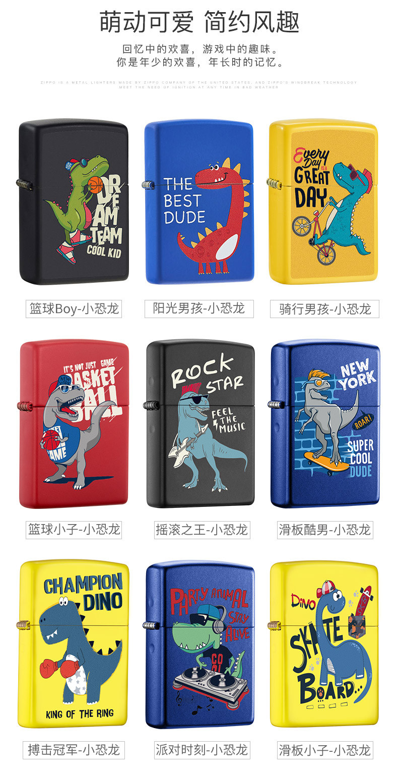 Zippo официальный Флагманский магазин зажигалки Zippo Positive версия Зажигалка Zippo мужской Персонализированная серия мультяшных динозавров