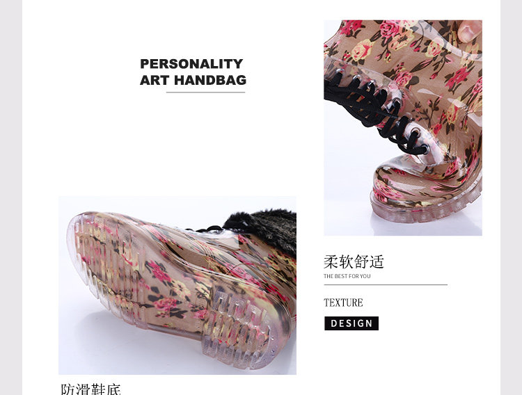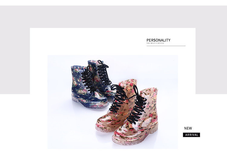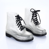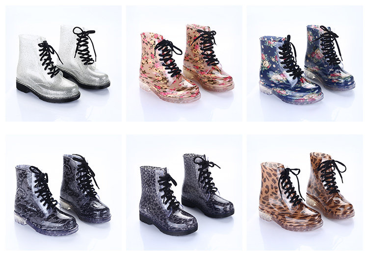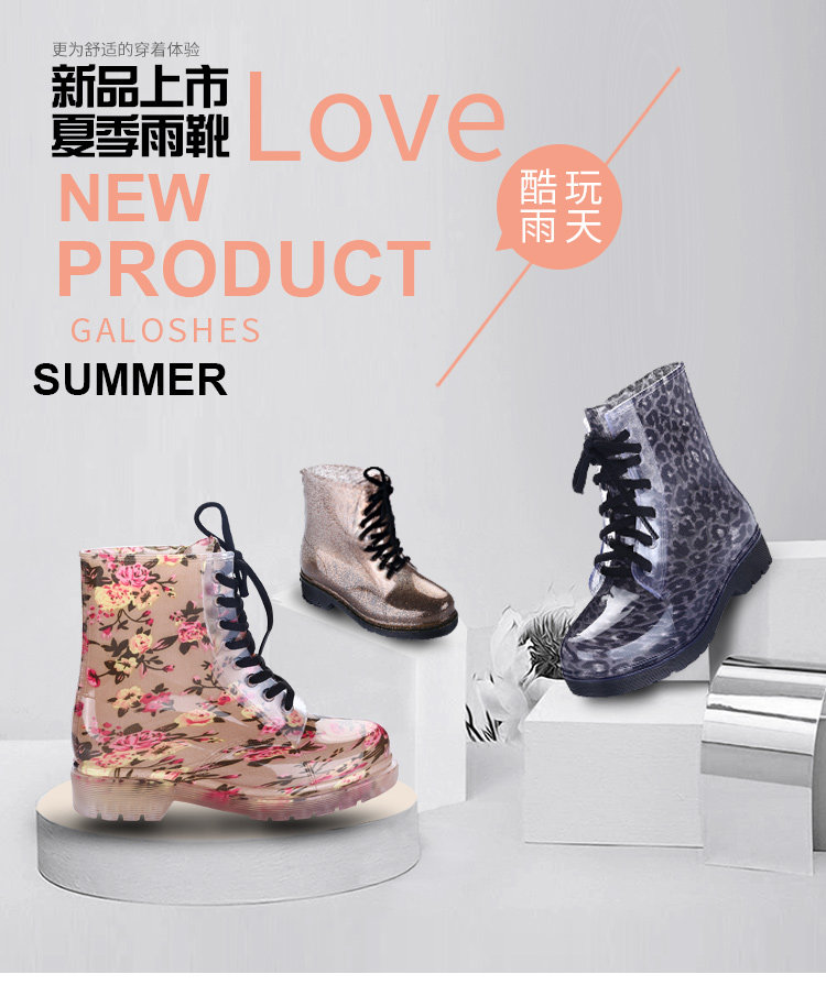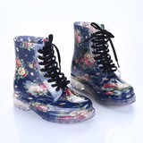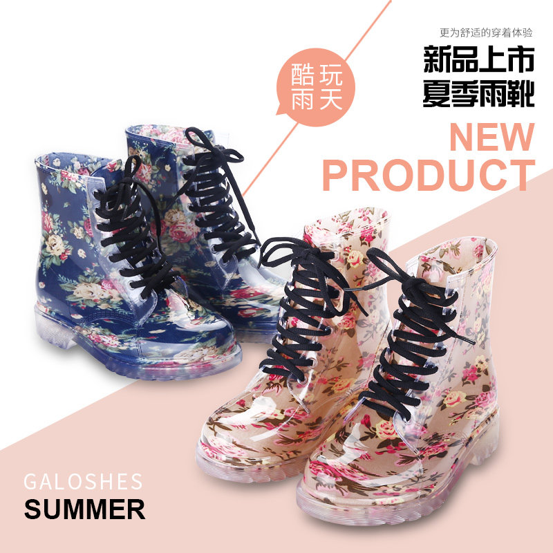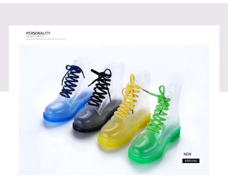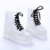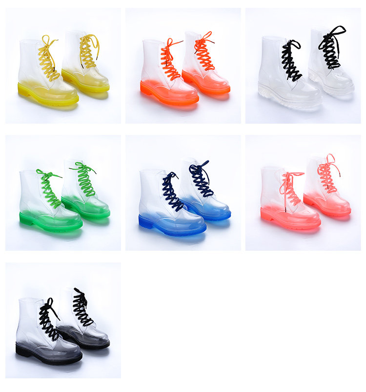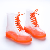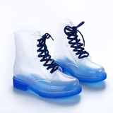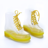 Популярный средние женский Мартин дождь сапоги кухня желе низкое повышение дождевой обуви девушка осень нескользящие Прозрачная водяная обувь