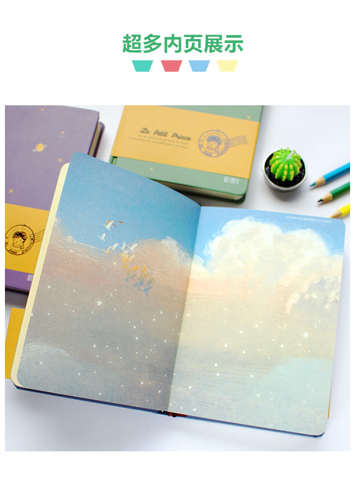 Маленький принц цвет Страница Иллюстрация Дневник рисованной винтаж Ветер Простая литературная девушка Канцтовары Творческая книга для рук книга