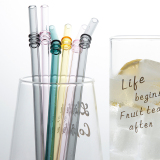 Ins ветер разноцветный Стеклянная солома высокая Боросиликатный стеклянный сок напиток соломинка прозрачная изогнутая соломенная креативная мешалка