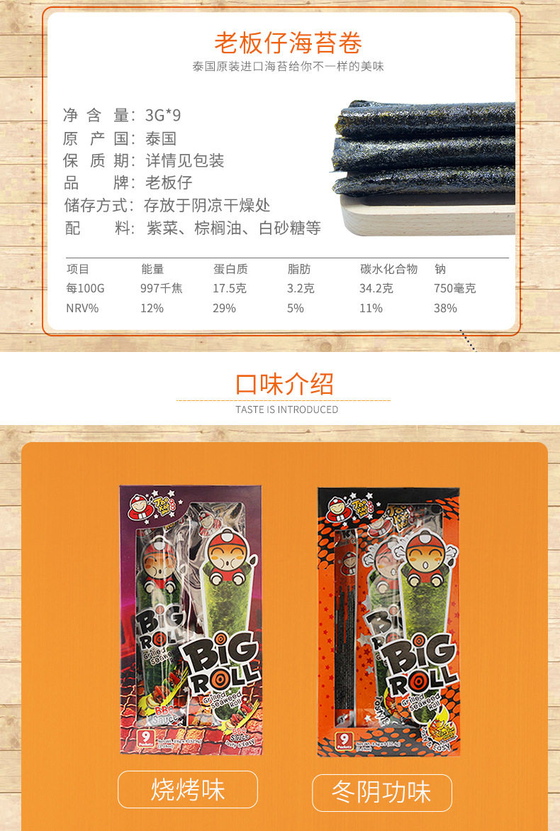 Таиланд импортировал Старый панель 海 卷 27 г / коробка Bigroll Оригинальный хрустящий жареный морской водоросли морские водоросли