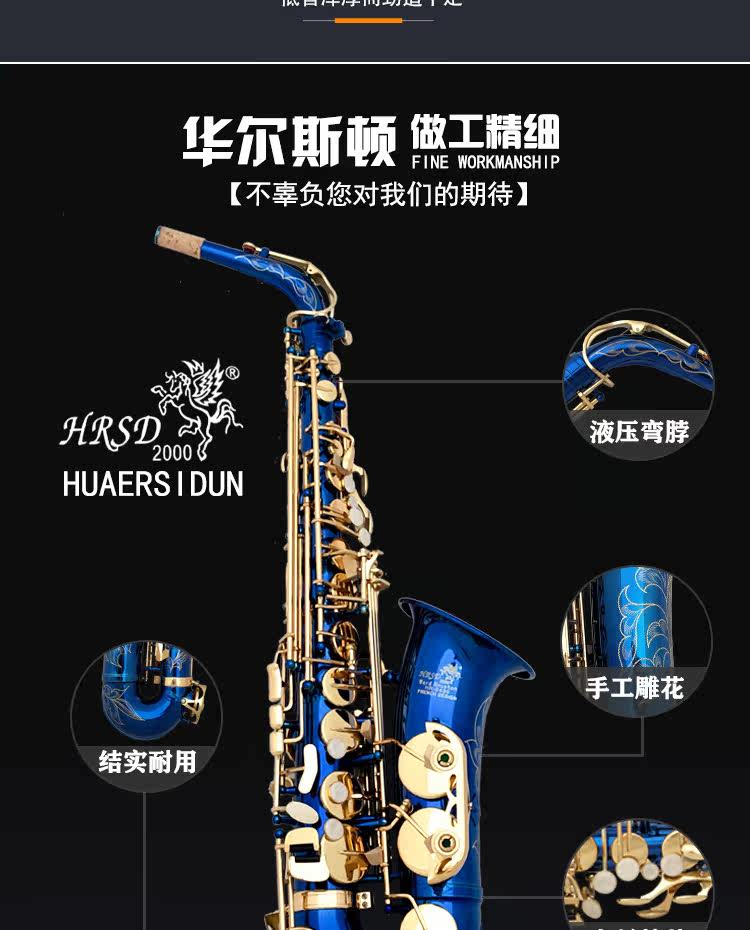 Тайвань Уолттон Музыкальные инструменты E-Регулируя саксофон синий Золотой ключ ручная работа Резная игра бесплатная доставка по китаю
