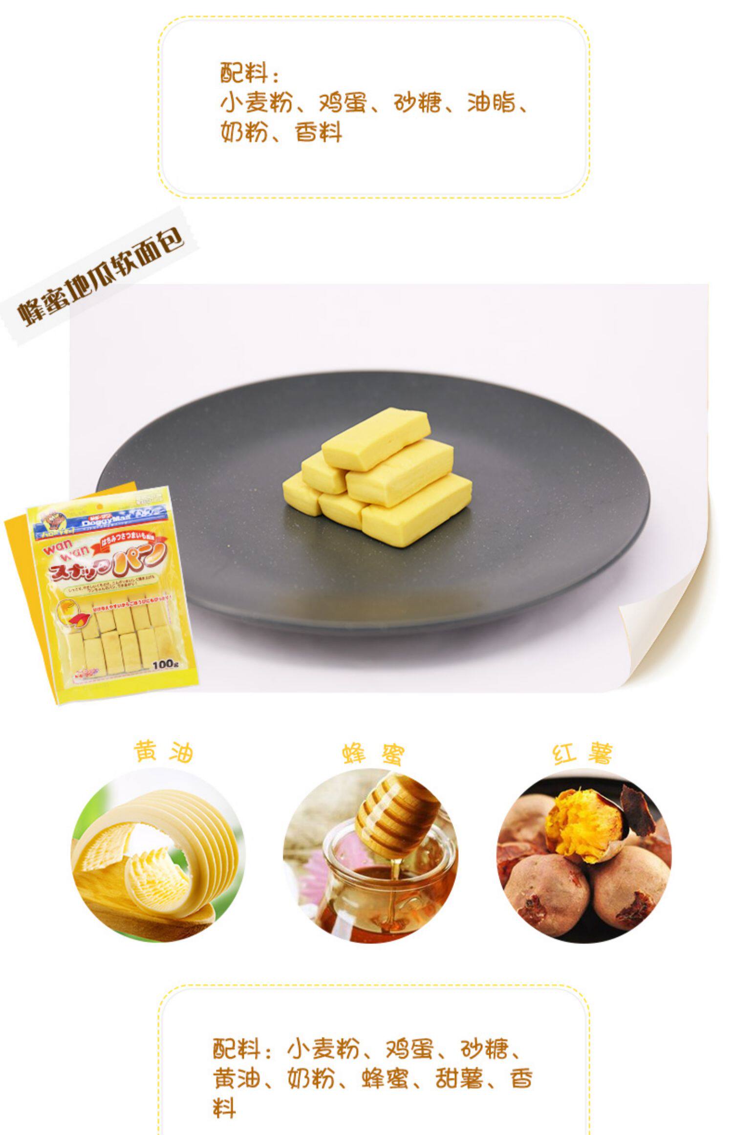 Японская мультика классический Запеченная мягкая поверхность пакет Собака закусочная подготовка награда Мед сладкий картофельный молочный вкус 100 г
