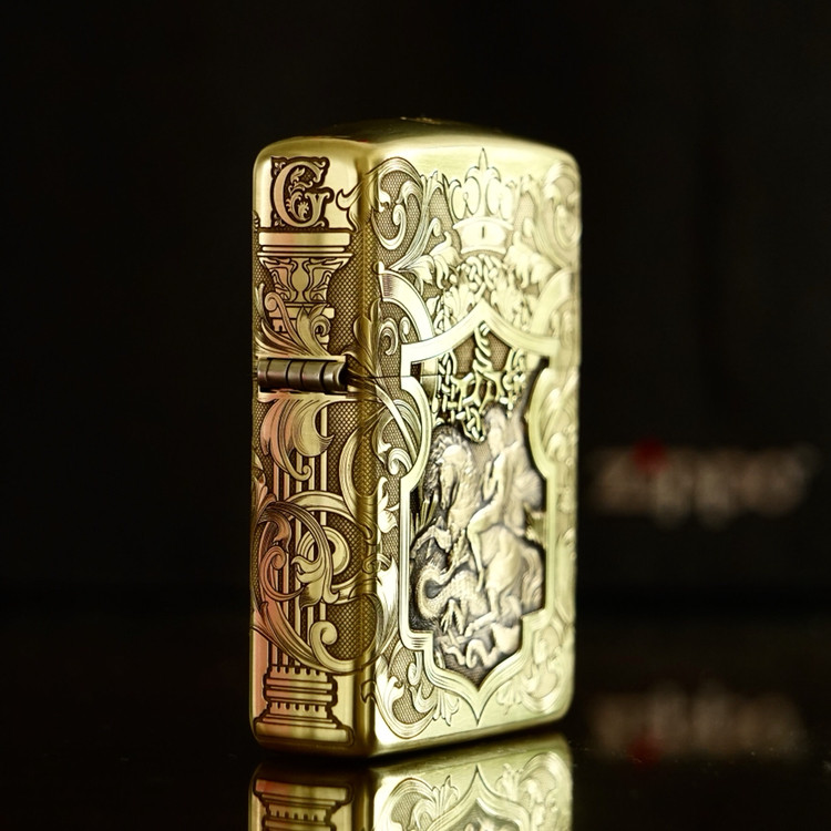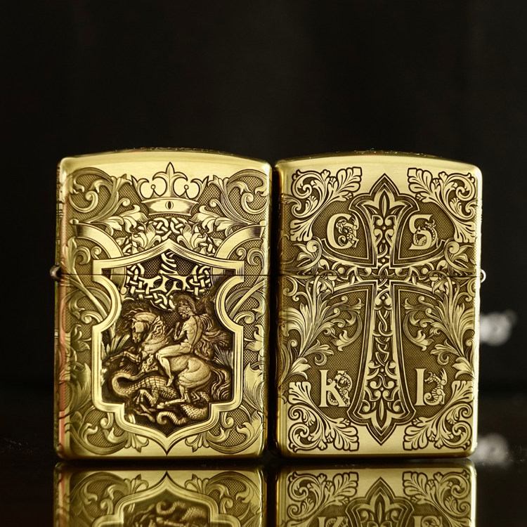 Оригинал Ветрозащитная керосиновая зажигалка Zippo Святой Георгий, убивающий дракона Библия Тан трава десять слово Каркас из чистой меди с гравировкой слово