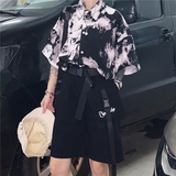 Сорочка Лето корейская версия ins винтаж Дизайн сексуально короткий рукав рубашка Свободный BF тонкий стиль верх Одежда куртка прилив