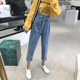 Весна 2019 новая коллекция корейская версия студент ремень многие с застежкой утягивается Талия джинсовый Брюки bud harlan джинсы Женский прилив