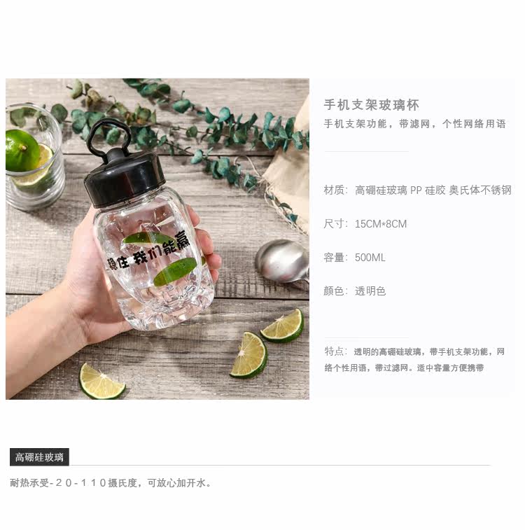 Кронштейн мобильного телефона креативное стекло мужские и женские ученик для влюбленной пары сеть красный Регистрация портативной чашки с фильтром Чистый жаростойкий чашкой чая