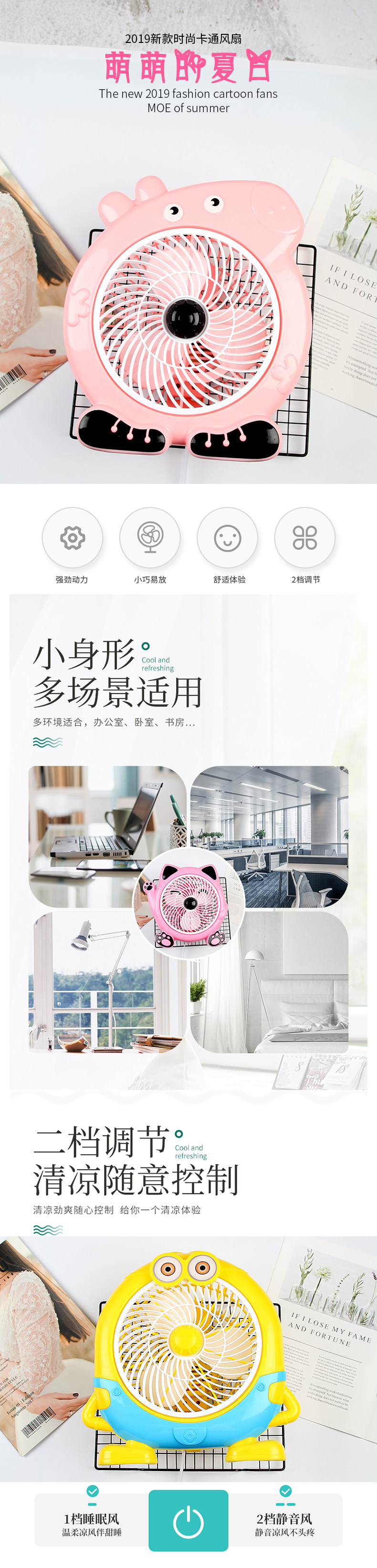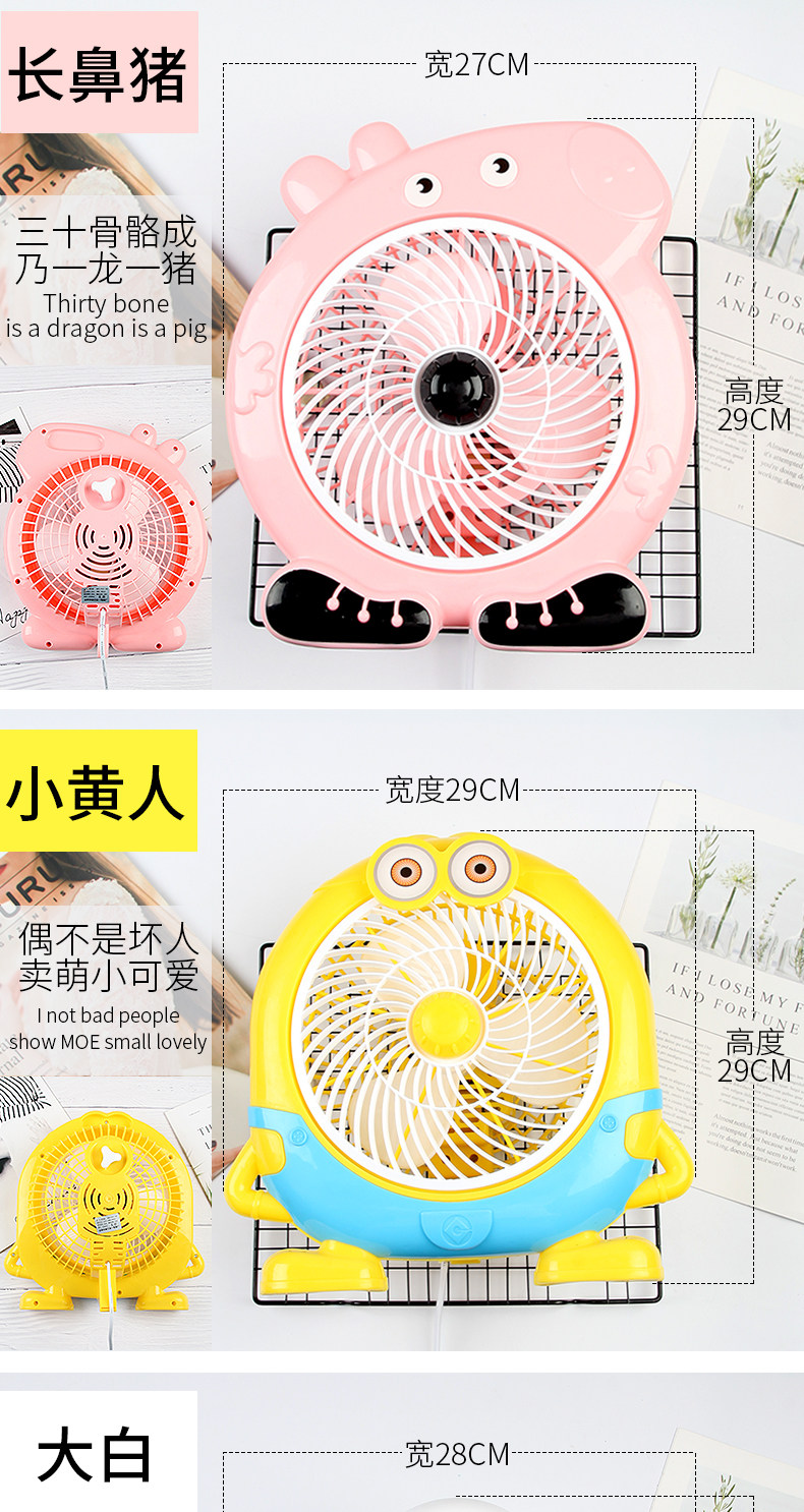 Мультфильм электрический вентилятор студент общежитие верх Маленький вентилятор офисный настольный немой спальня кровать маленький перевод