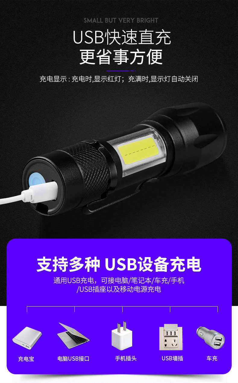 Фонарик сильный свет перезаряжаемый небольшой портативный мини бытовой открытый дальний супер яркий светодиодный многофункциональный карман 5000
