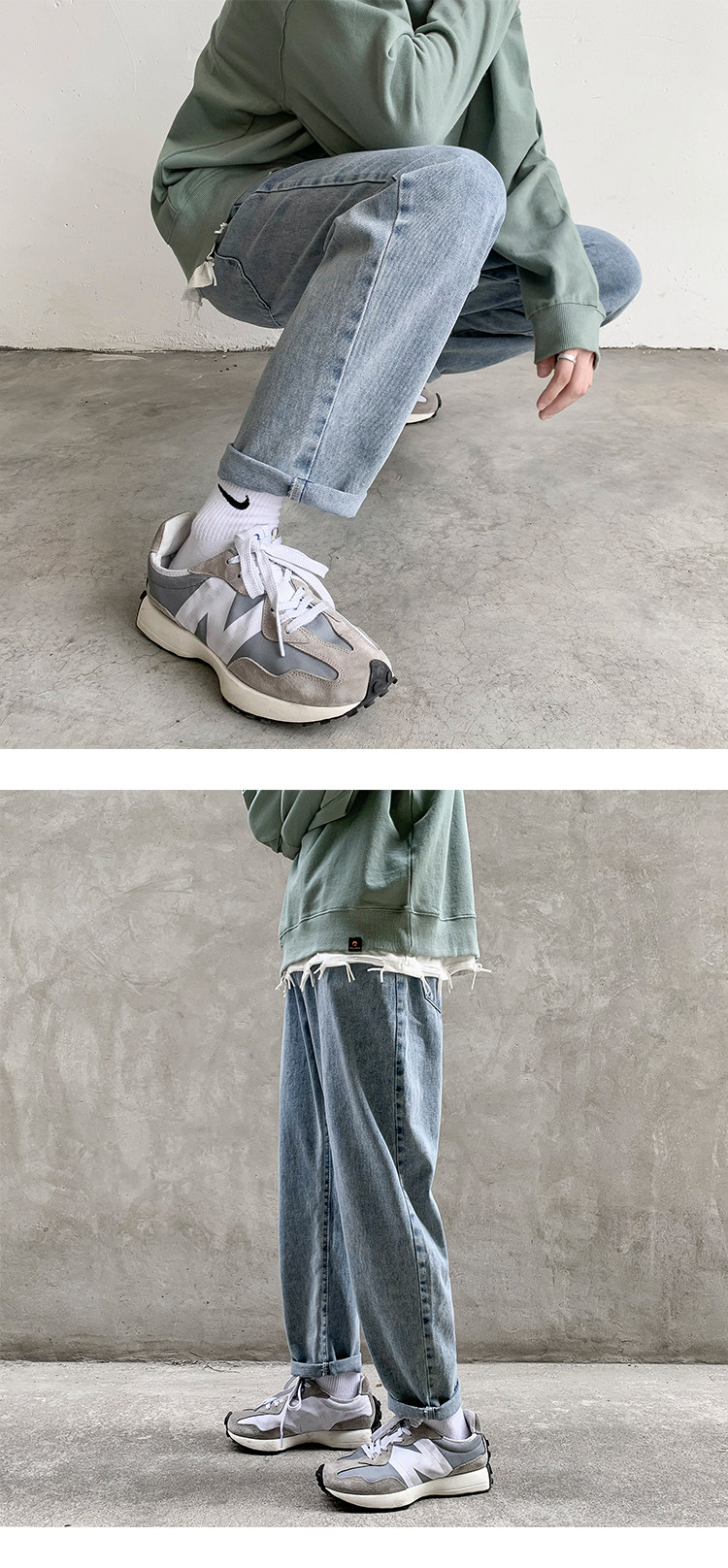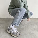 Hong Kong Wind Jiufen джинсы ребенок мужской Модный бренд, свободное ощущение прямые Широкая нога корейская версия модные Пружинные универсальные старые штаны
