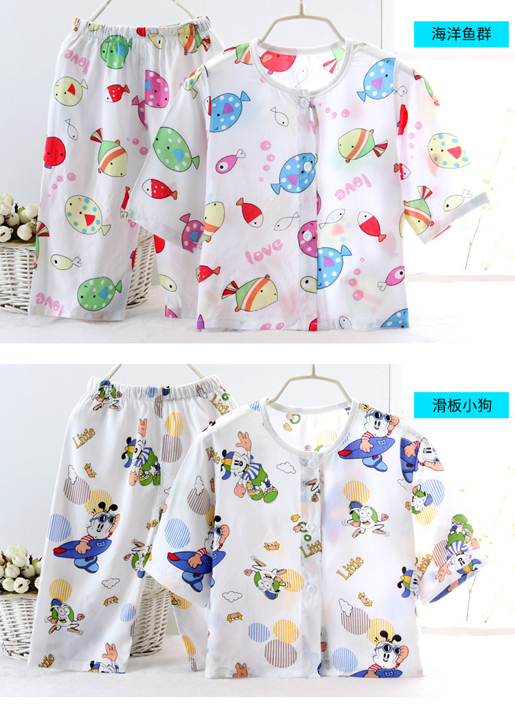 1-3 года детские хлопок Шелковое платье мужской на младенца Молодость стиль Летние кондиционированные домашние услуги комплект кардиган 2
