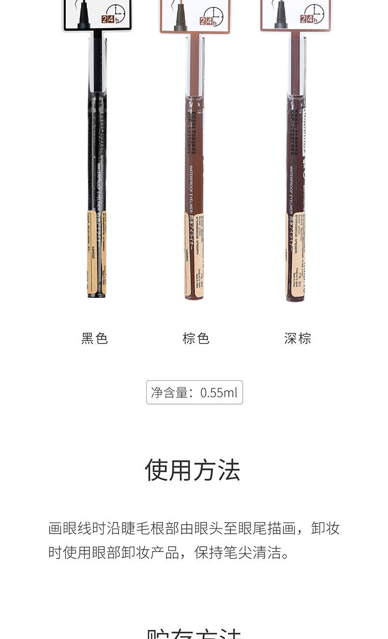 Цветная подводка MINISO, против пота, не оставляет следов, стойкая, не цветет черный темно коричневый новичок