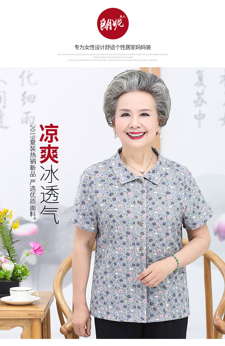 Бабушка платье Летнее платье полностью хлопок сорочка 70-летняя пожилая женщина матери чистый хлопок рубашка Woneai Adificate Старик Футболка