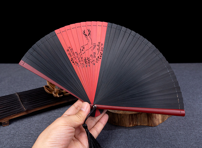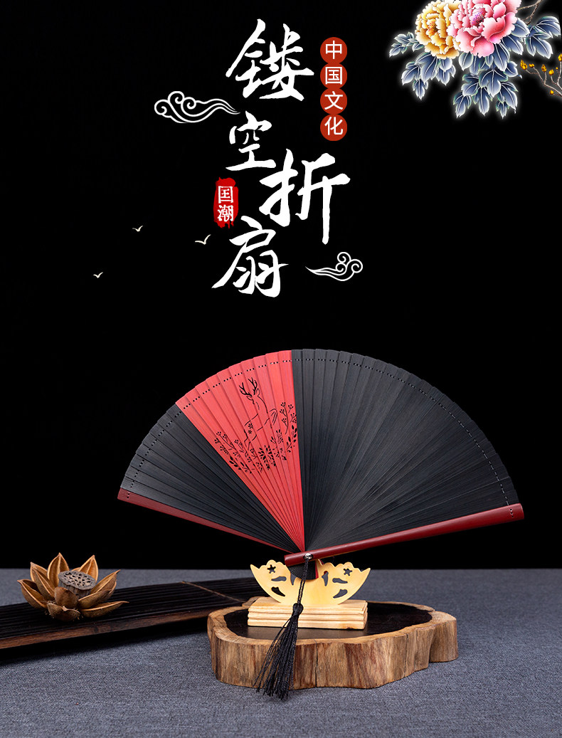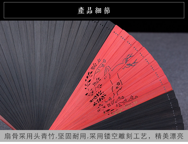 Оу Чанцзи Ренжун Ю, Уличный шум полностью Бамбуковый веер полые резьба рука древний классический Подарочный веер