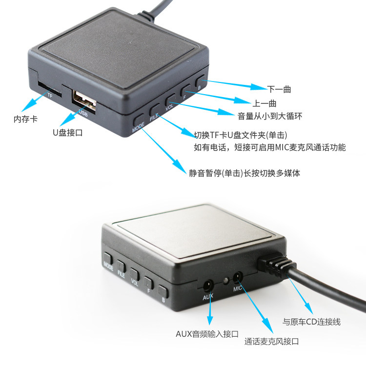 Джерри синий Стоматологический контроль чип ,проходят заводская комплектация авто Зарезервировать Aux Sound частота Введите функциональное соединение.Автомобиль синий Музыкальный игрок зубов имеет без Функция передачи музыки линии, стрелка Старый стиль Шоу стиль Автозвук, потому что многие потребители обнаружили, что обычная музыка очень неприятно, если нет машины не имеет звук частота Введите порт, вам нужно сжечь диск, а источник диска больше новый Медленный, неудобный, во многих старых стиль В аудио, заводская комплектация авто Бронирование машины имеет AUX внешний Функция ввода, поэтому этот продукт может открывать и использовать скрытые функции, поддержать онлайн -музыку при потоковой медиа поколение Все виды приложений онлайн довольно удобно, а источник больше новый своевременно.Этот продукт стрелка Для разных марок моделей, согласно заводская комплектация авто Интерфейс, зарезервированный за хостом, оснащен различными парами разъемов,