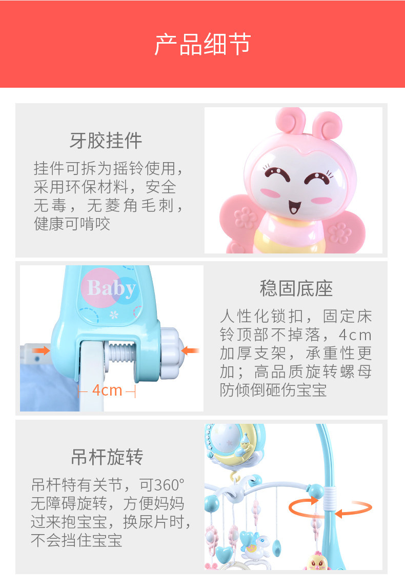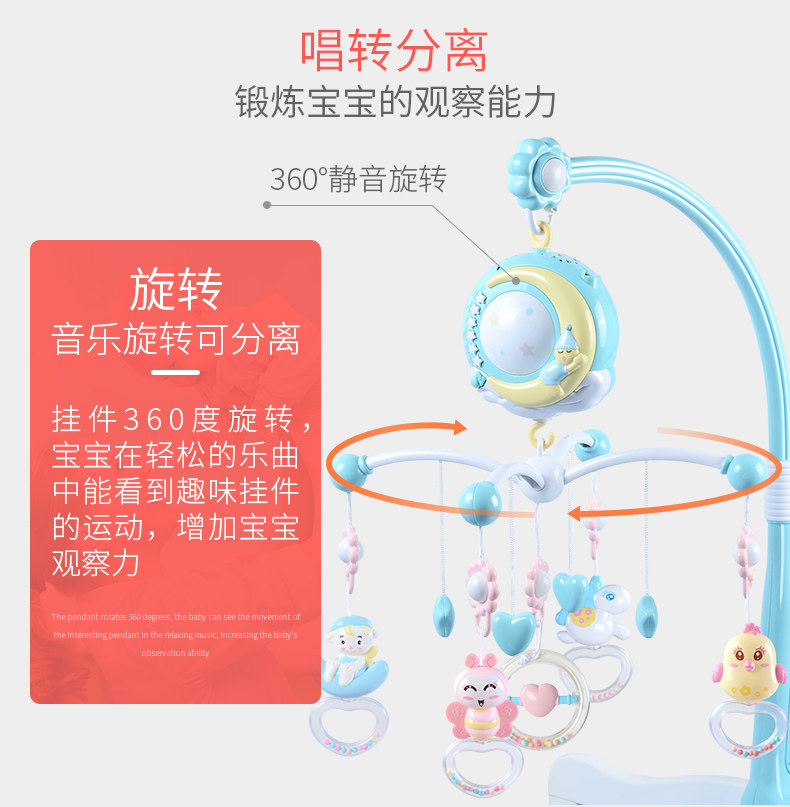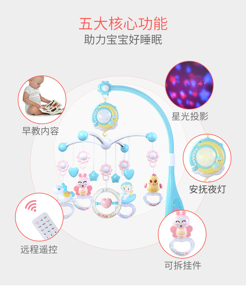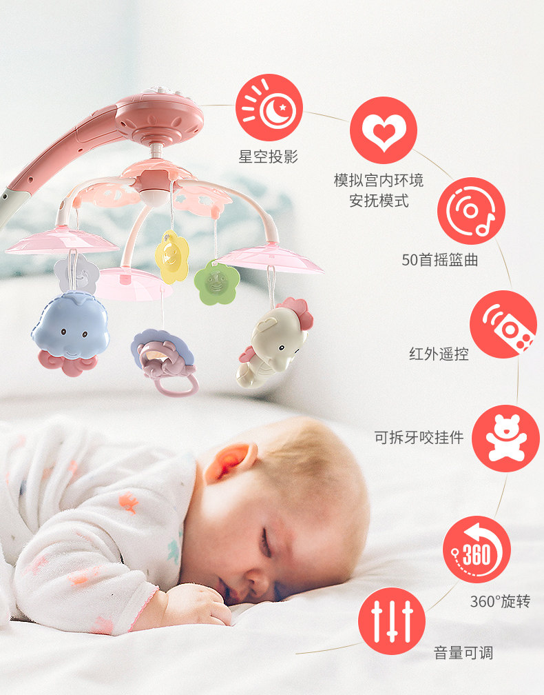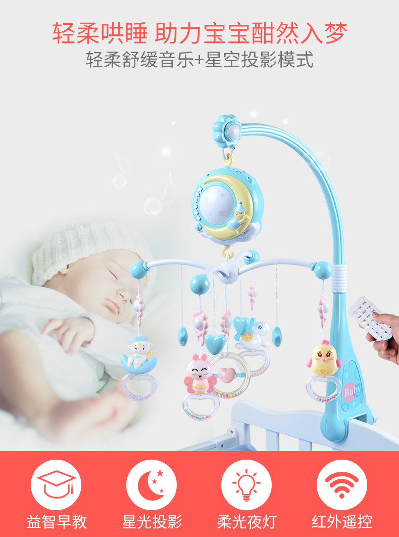 Новый беременность на младенца Кровать Bell 0-1 год Музыка вращающаяся прикроватание детские кровать верх Игрушка детские Корзина висит подвеска 3