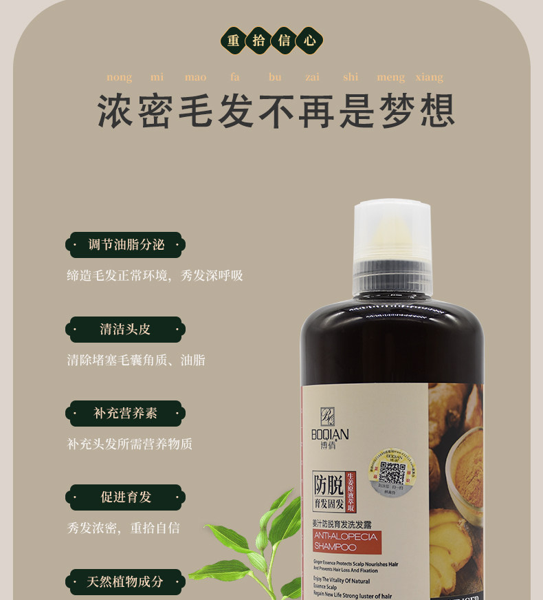 Шампунь с имбирем Boqian имбирный шампунь против выпадения волос имбирь имбирный король шампунь