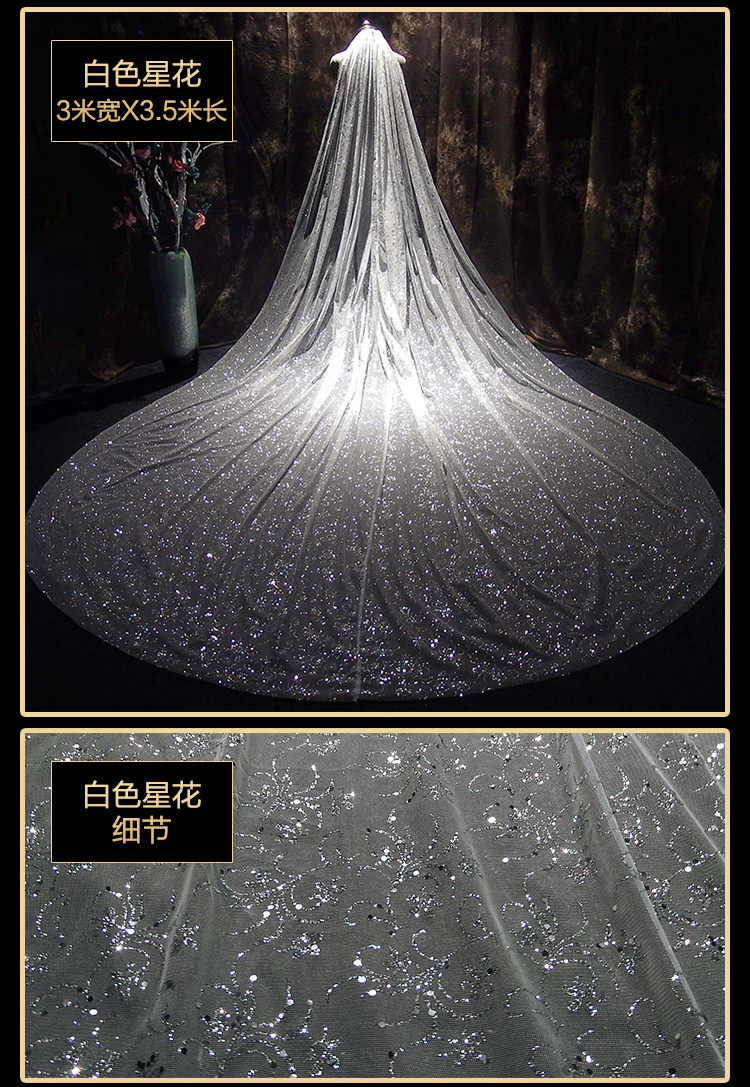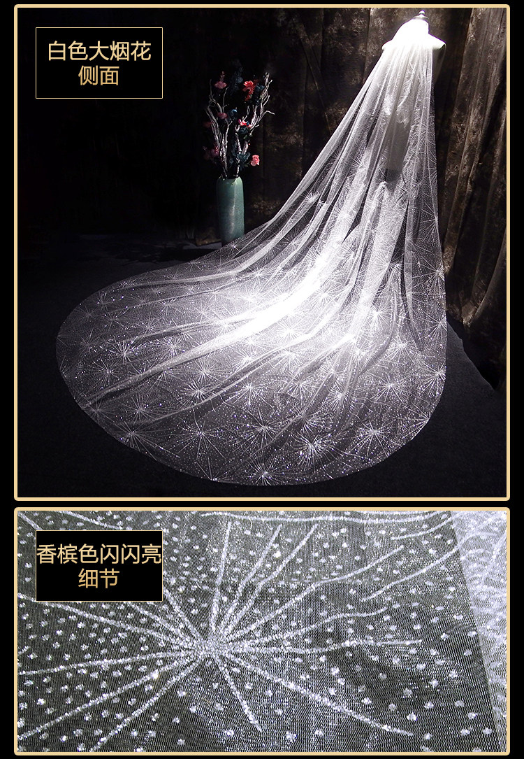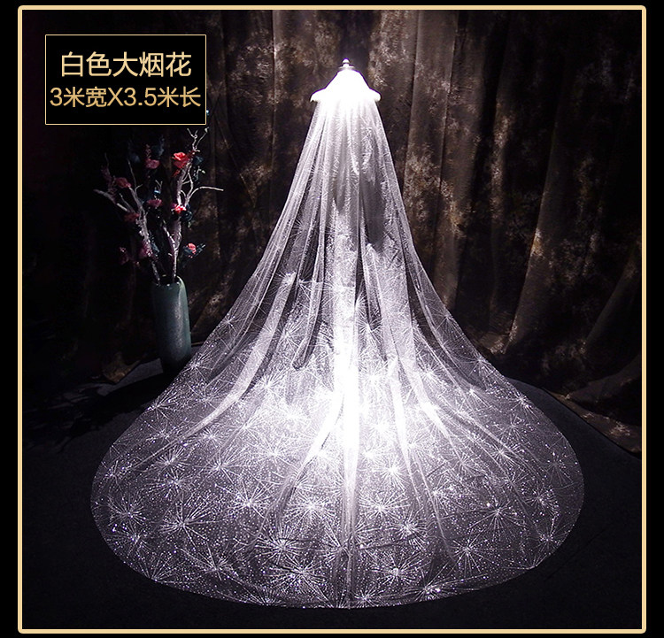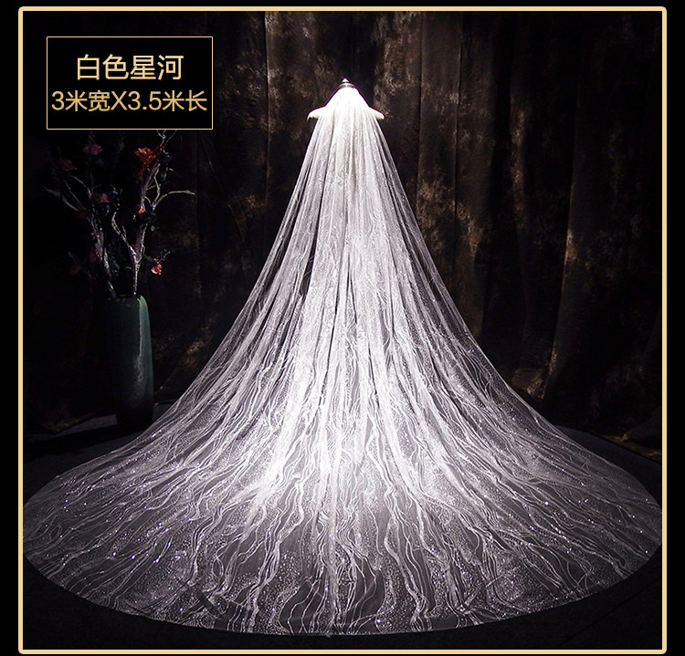 Новый мама свадебное свадебное Сделайте фото заголовок Super Xiansen Korean длинный Блестящий перетаскивание хвост белый Свадебная марля