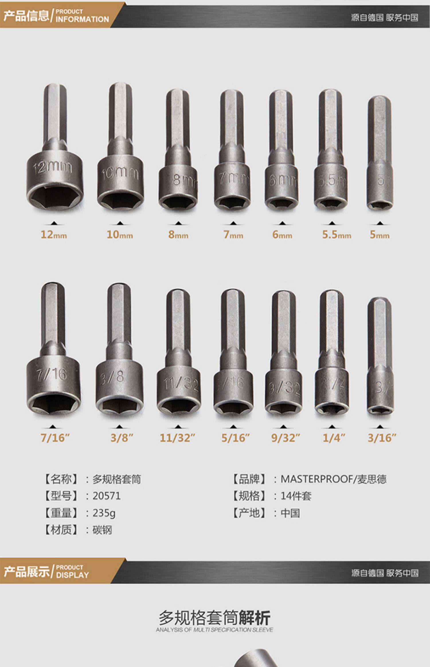 Mai Dide 14 ореховой удаления рукава шестигранника с длинным рукавом на фонарике зарядки сверления электрического хитрой рукава комплект