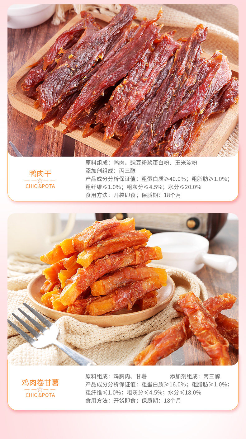 Профицит срок годности: 6 месяцев верхЕда вкус: Куриная грудка сушеная 1,5 кг * 6 сумка(Целый ящик), Утиная грудка сухой 1,5 кг * 6 сумка(Целый ящик), Куриный ролл сладкий картофель 1,5 кг * 6 сумка(Целый ящик)